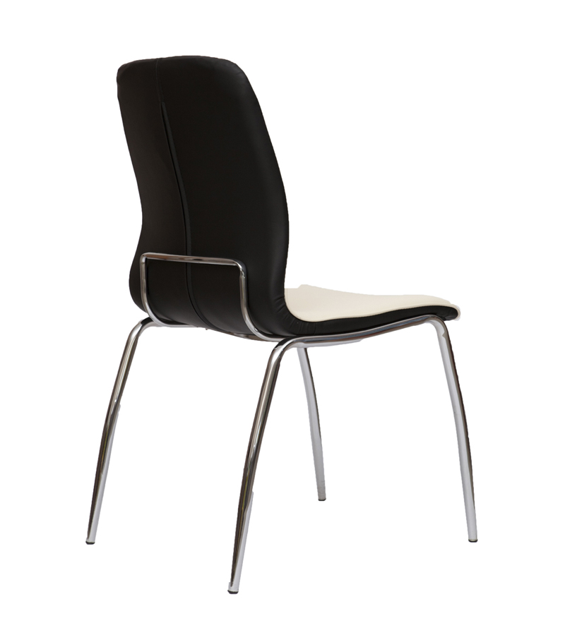 Стул «Nikola Никола» представляет собой современный образец мебели для кухни. Он изготовлен на основе прочного металлического хромированного каркаса. Обивка выполнена из экокожи и декорирована декоративной стяжкой. Модель может быть в двух цветах: бежевом и черном.