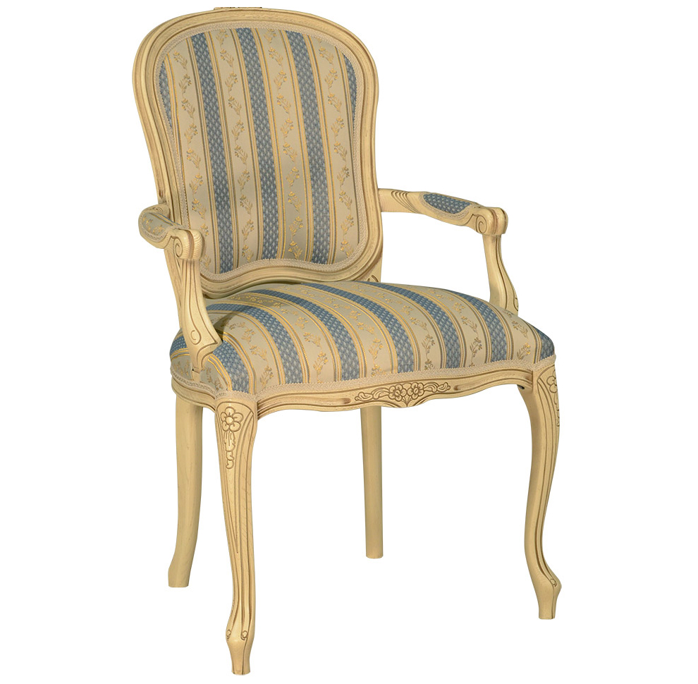 Обеденный стул «Роял» представлен в роскошном классическом стиле. Мягкое сиденье и спинка модели обтянуты надежной и прочной тканью, которая позволит стулу даже при постоянной эксплуатации не утратить своего презентабельного внешнего вида.Кресло «Роял», имея те же характеристики, что и стул, для еще большего комфорта оснащено удобными подлокотниками.
