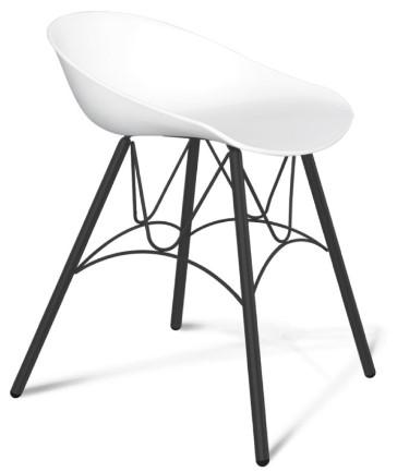 Элегантный с лаконичными линиями кухонный стул подойдет и для помещений кафе и ресторанов. Также стул можно использовать для уличных террас общественных заведений. Каркас стула изготовлен из прочного металла покрытого порошковой краской.Черный цвет каркаса. Сиденье из прочного пластика белого цвета выдерживает любые перепады температур.