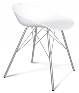 Красивый дизайнерский пластиковый стул займет достойное место в домашнем интерьере, а также в интерьере кафе и ресторанов. Прочный каркас из металлической трубы покрыт прочным порошковым покрытием серого цвета. Эргономическая удобная сидушка белого цвета. Каркас стула имеет дополнительные усиления в виде скрещенных прутов. На ножках стула есть пластиковые заглушки. Стул можно использовать на уличных участках кафе и добашних верандах.