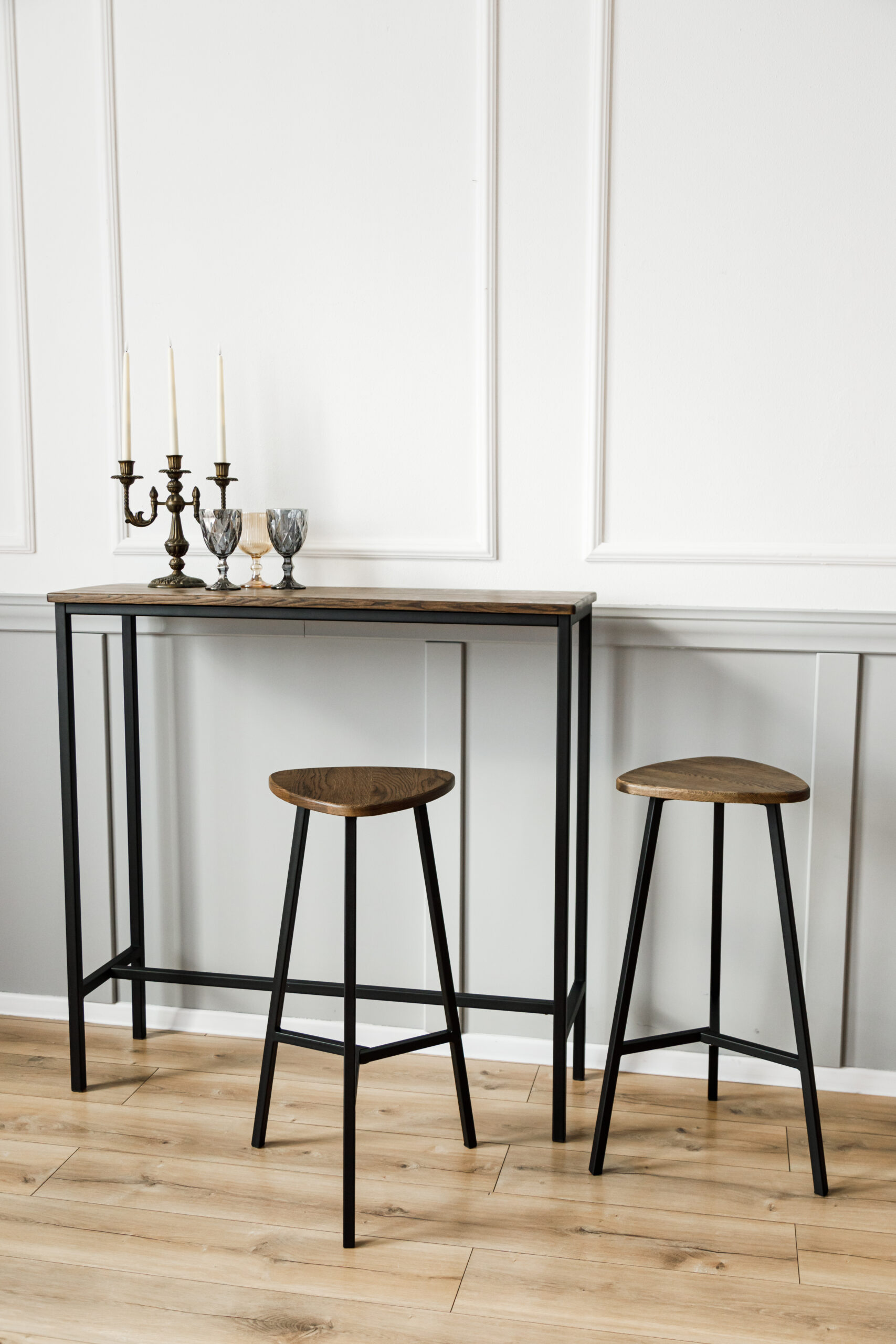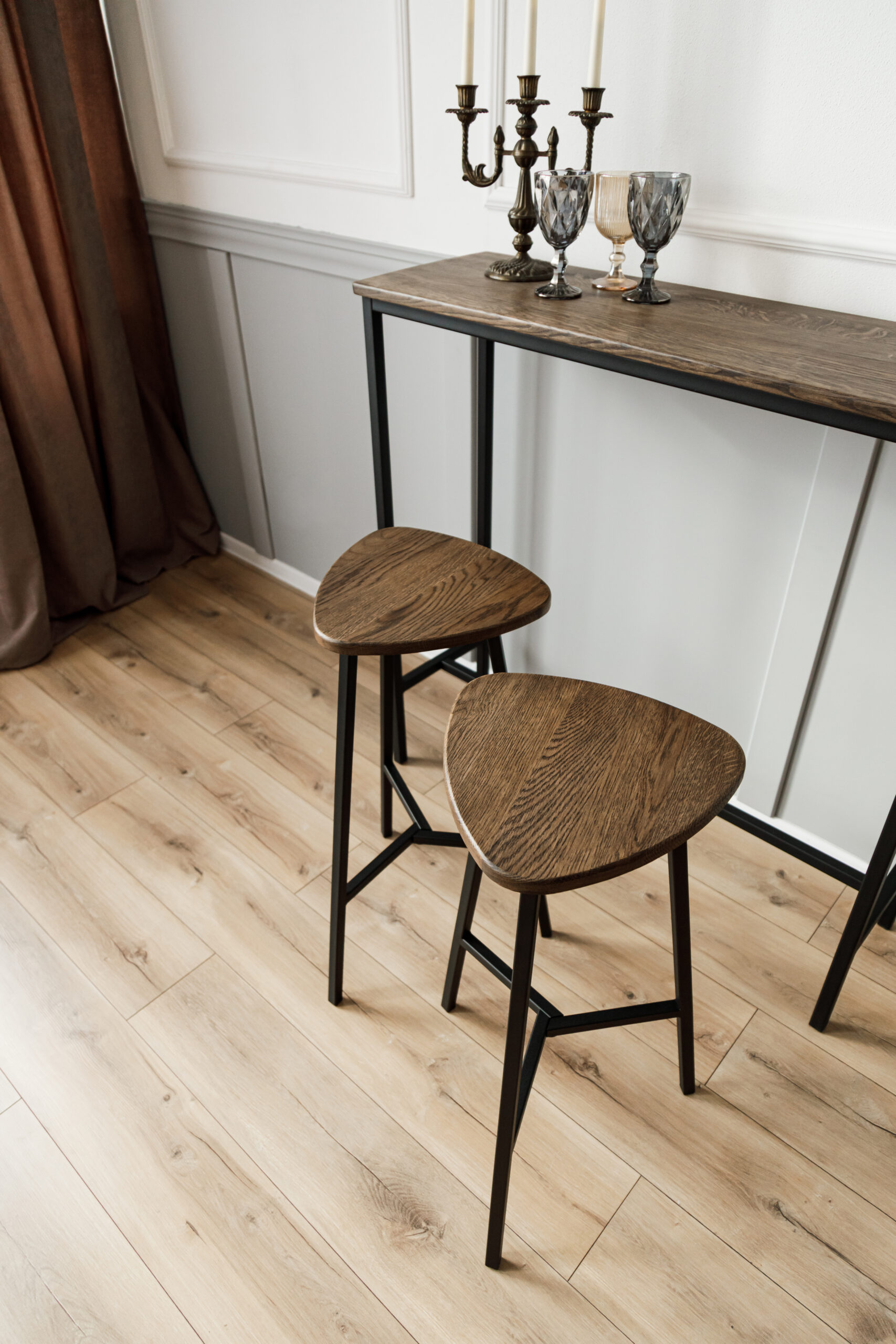 Полубарный табурет, высота 63 см. Материал: цельноламельный массив дуба, металл.