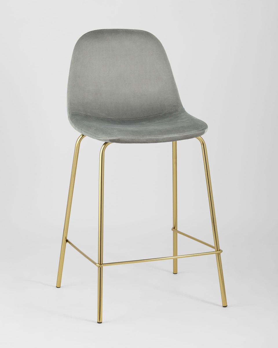 Стул полубарный «ВАЛЕНСИЯ» велюр серый, золотые ножки