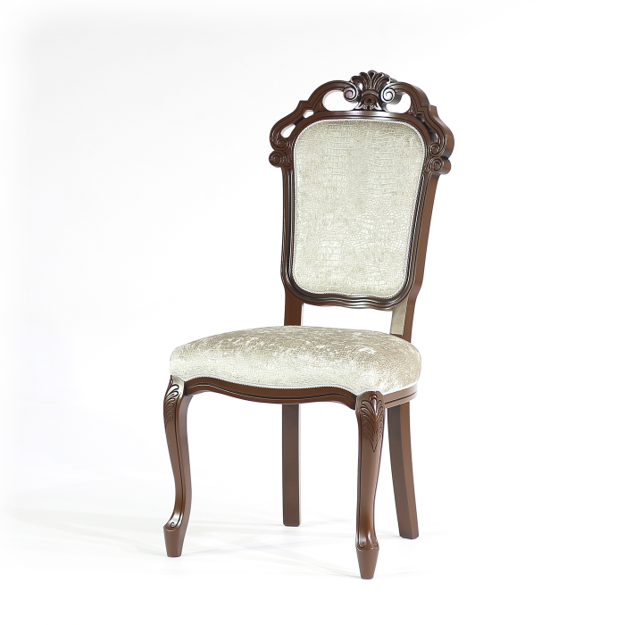 Стул с барочным декором. Фигурные ножки и царги с узором. Несколько вариантов тканевой обивки и тонировки массива.
