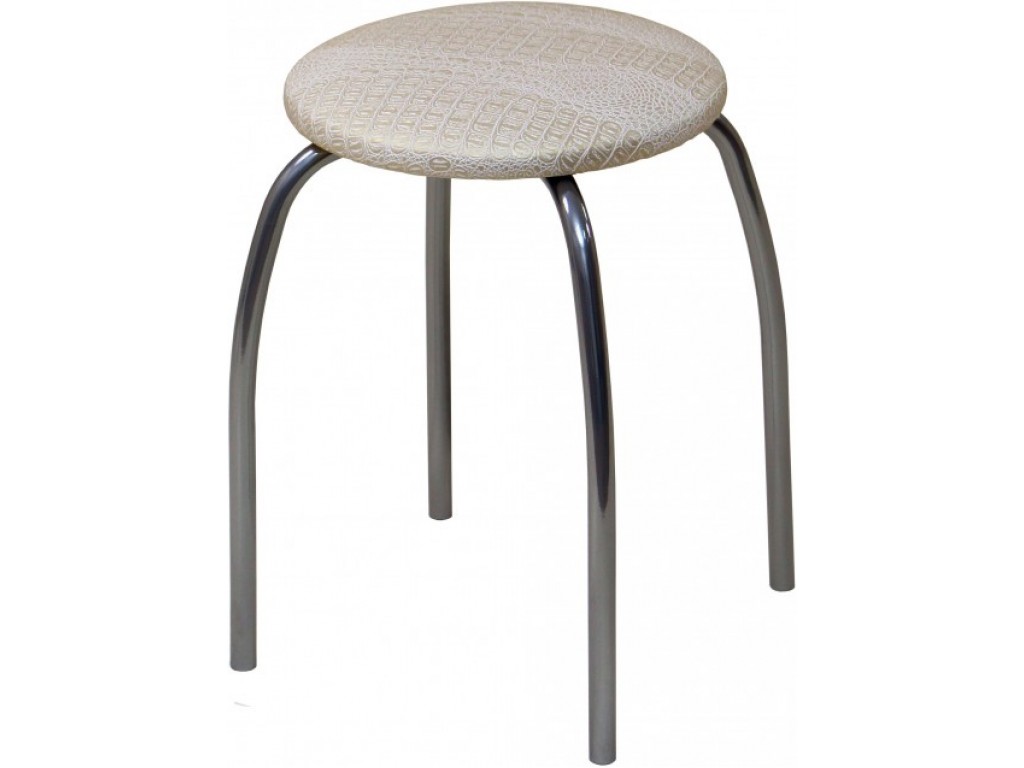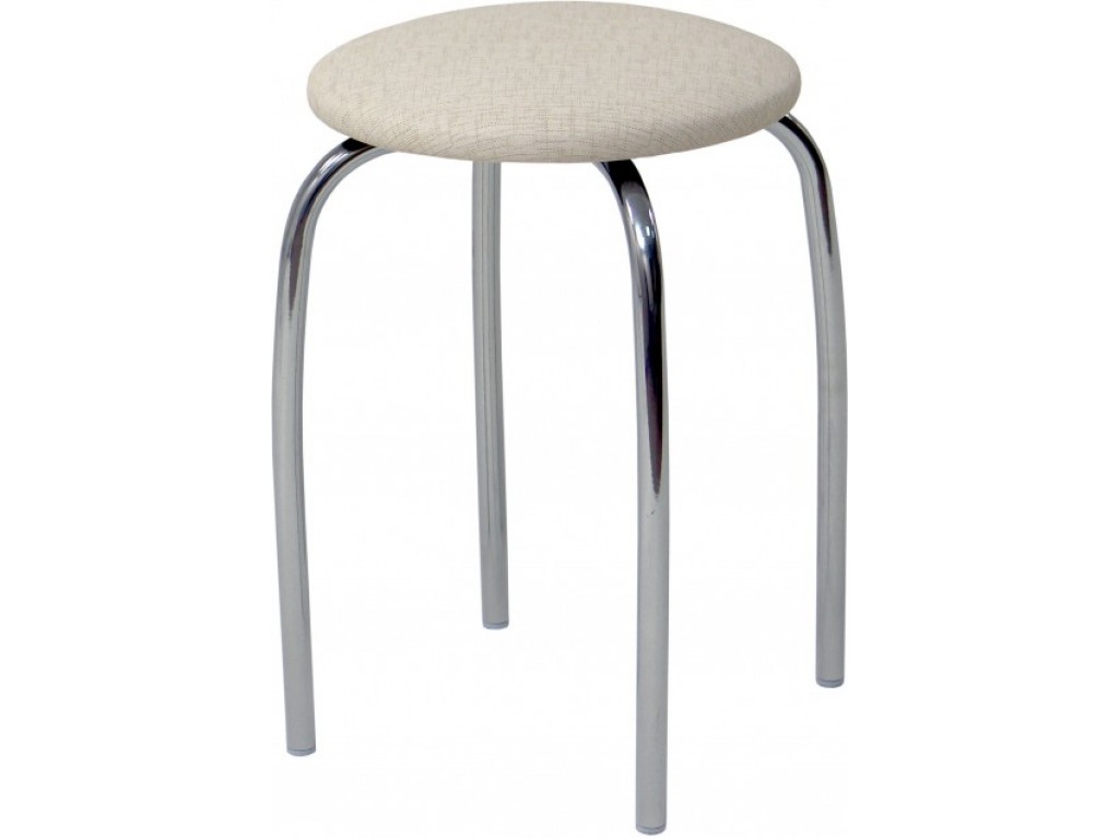 Мягкий элемент обит качественным кожзаменителем приятного бежевого цвета, который замечательно сочетается с металлическим блеском хромированного каркаса. Использование качественных материалов и простая лаконичная форма помогают продлить срок службы табурета.