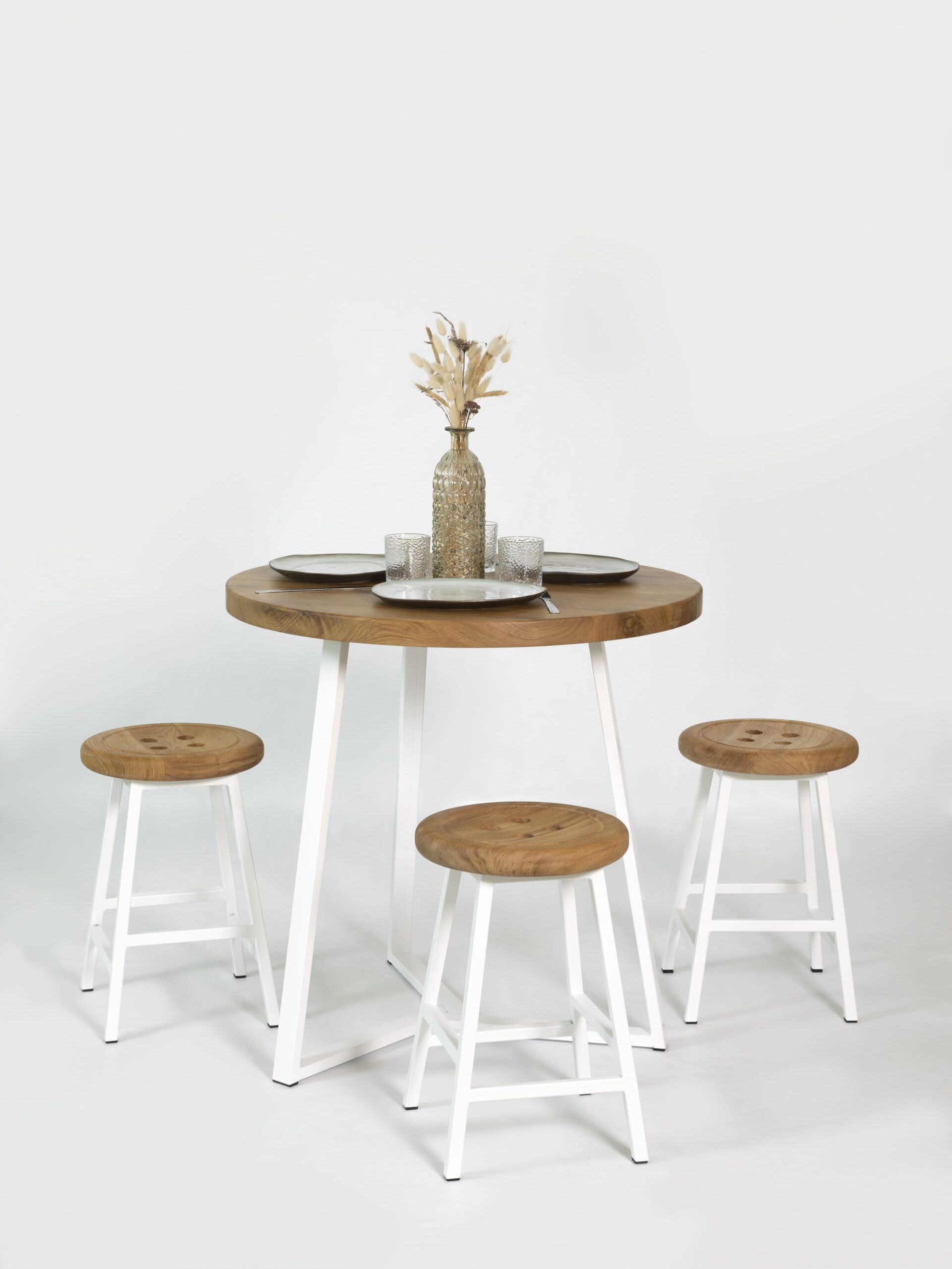 Высокий деревянный табурет, высота 76 см. Материал: цельноламельный массив дуба, металл.