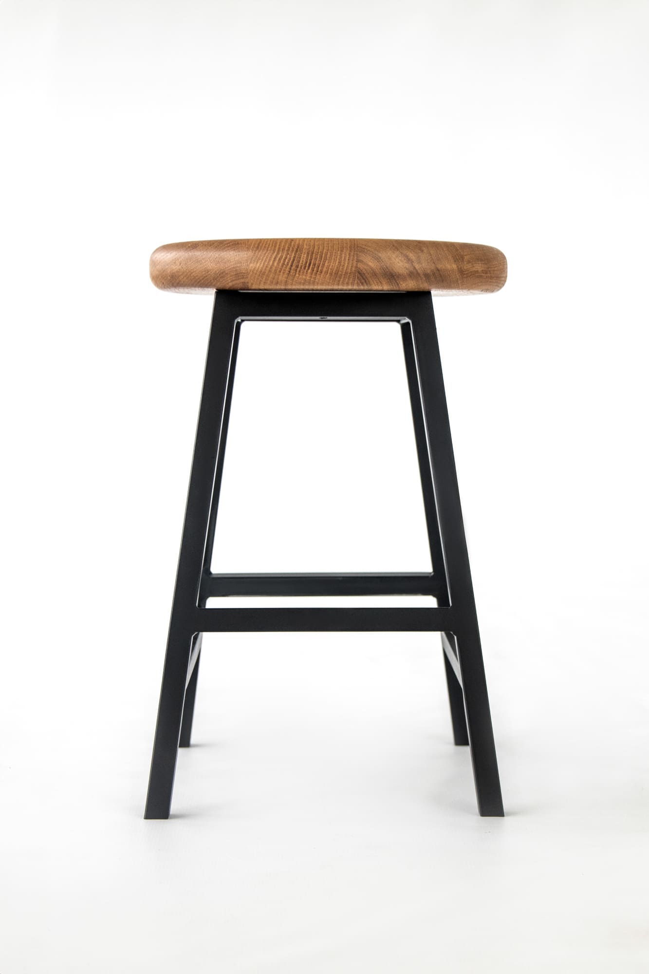 Полубарный табурет, высота 65 см. Материал: цельноламельный массив дуба, металл.