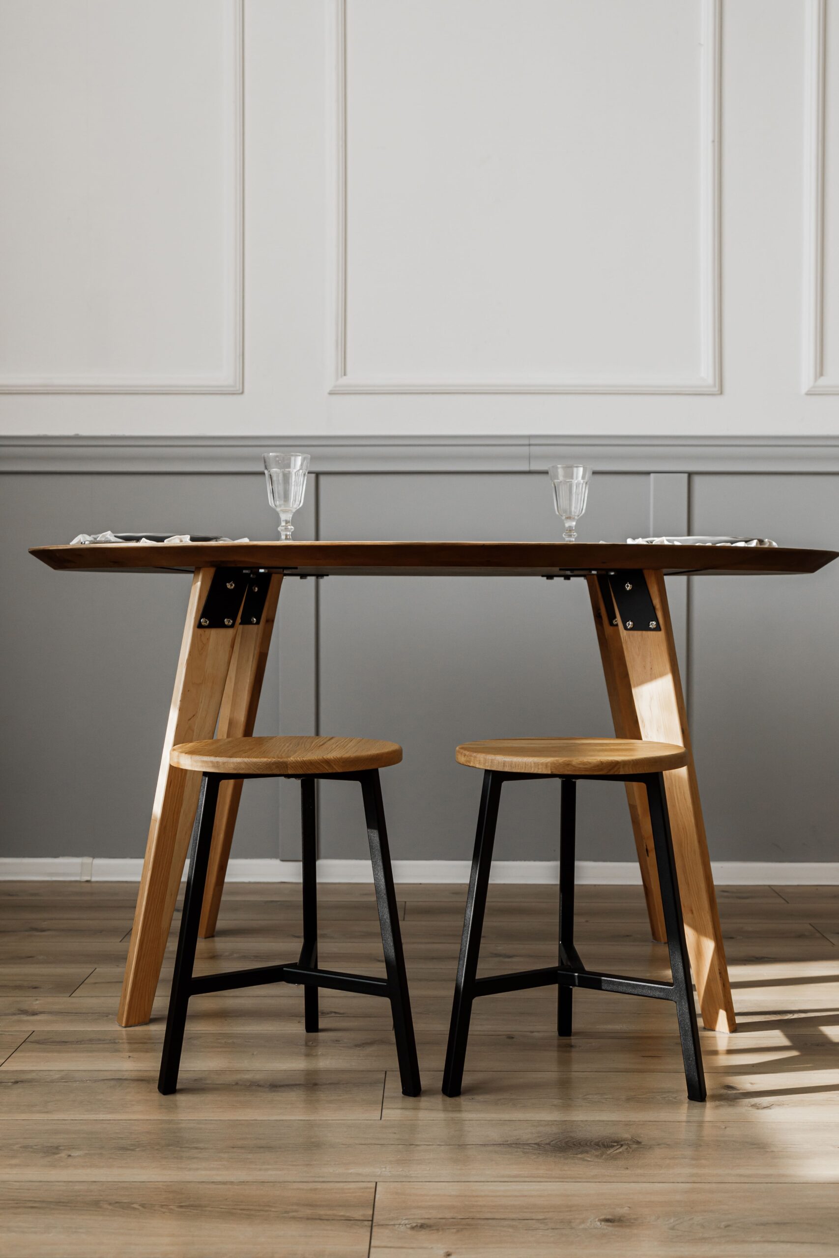 Низкий стул на кухню, высота 45 см. Материал: цельноламельный массив дуба, металл.