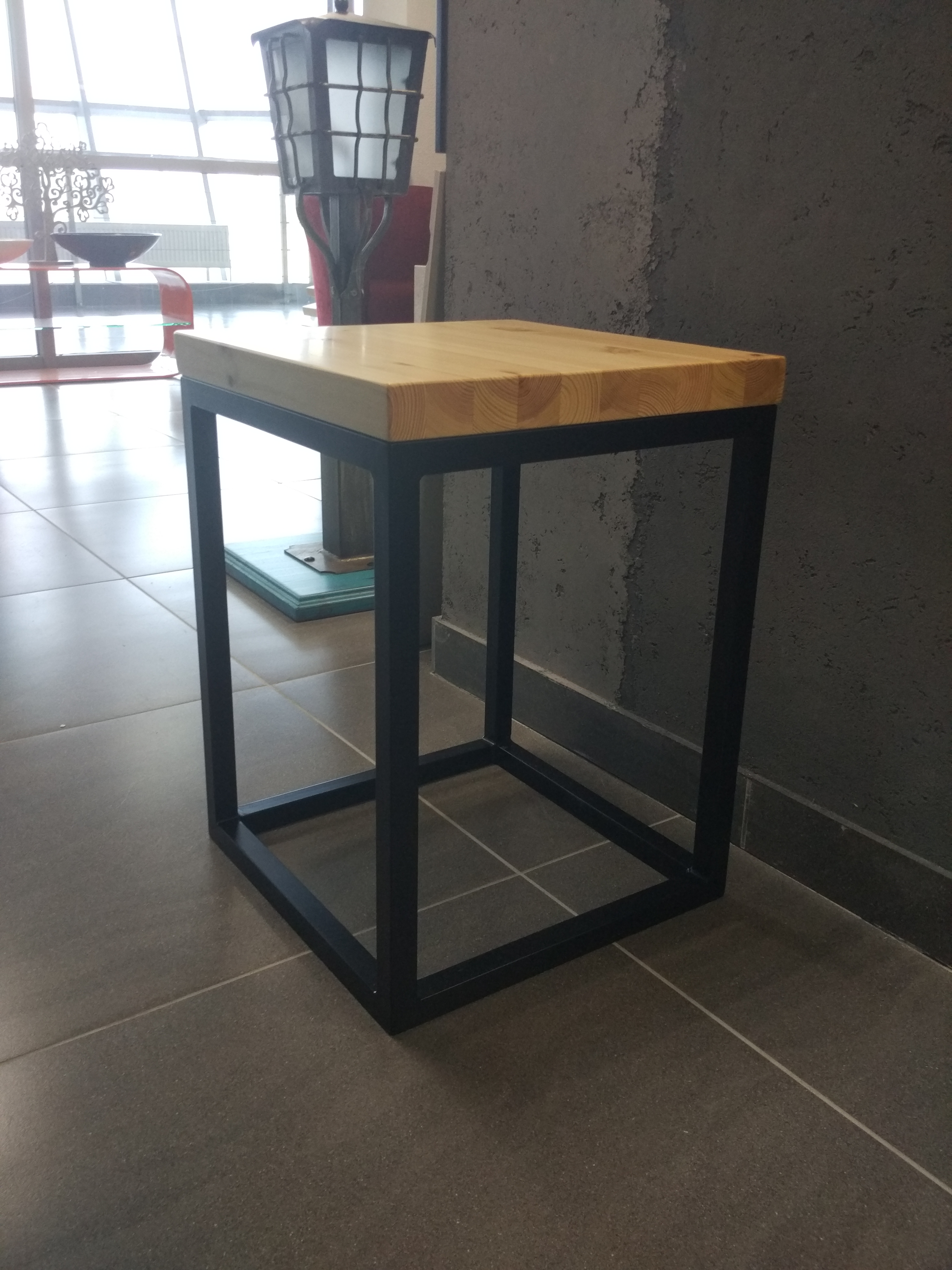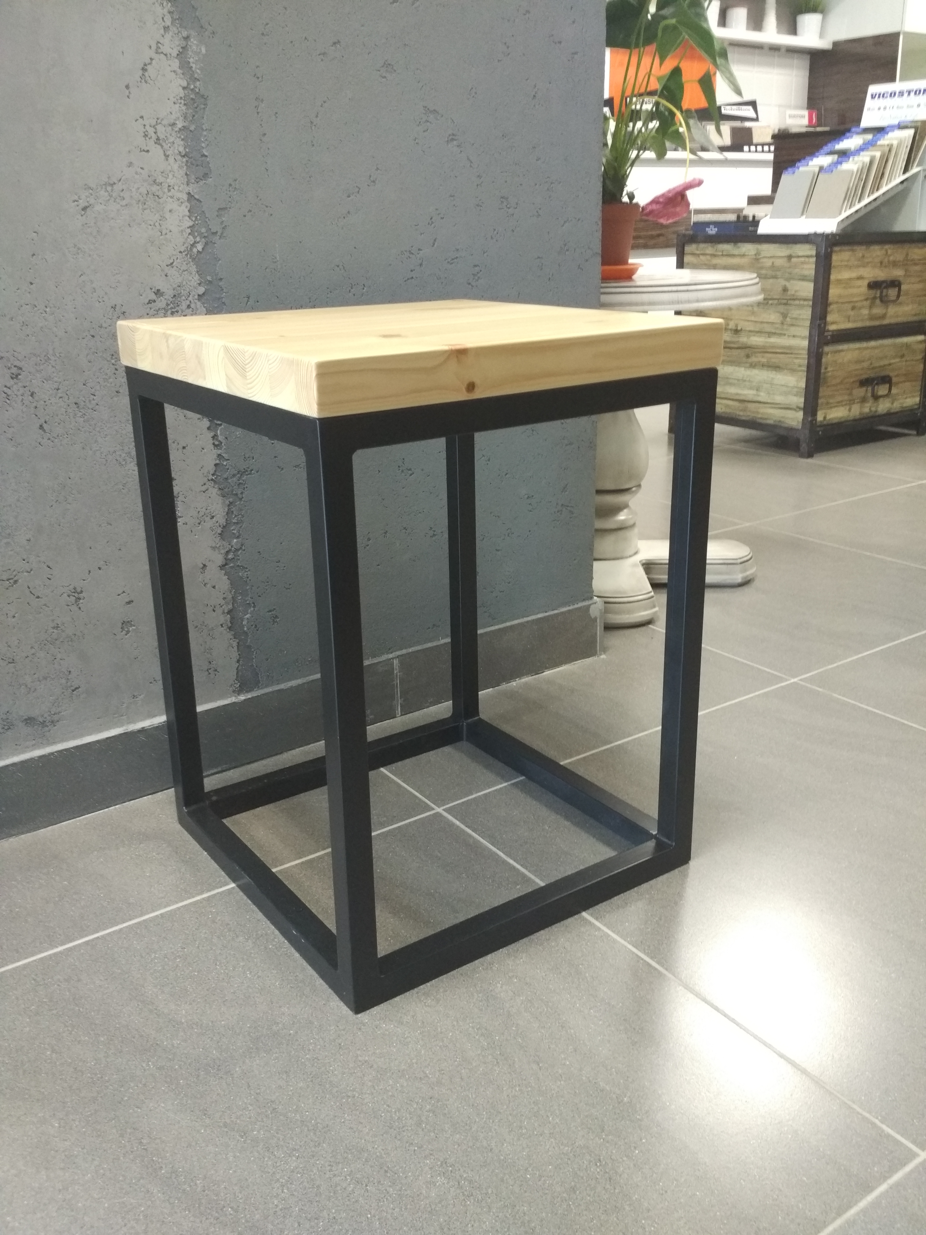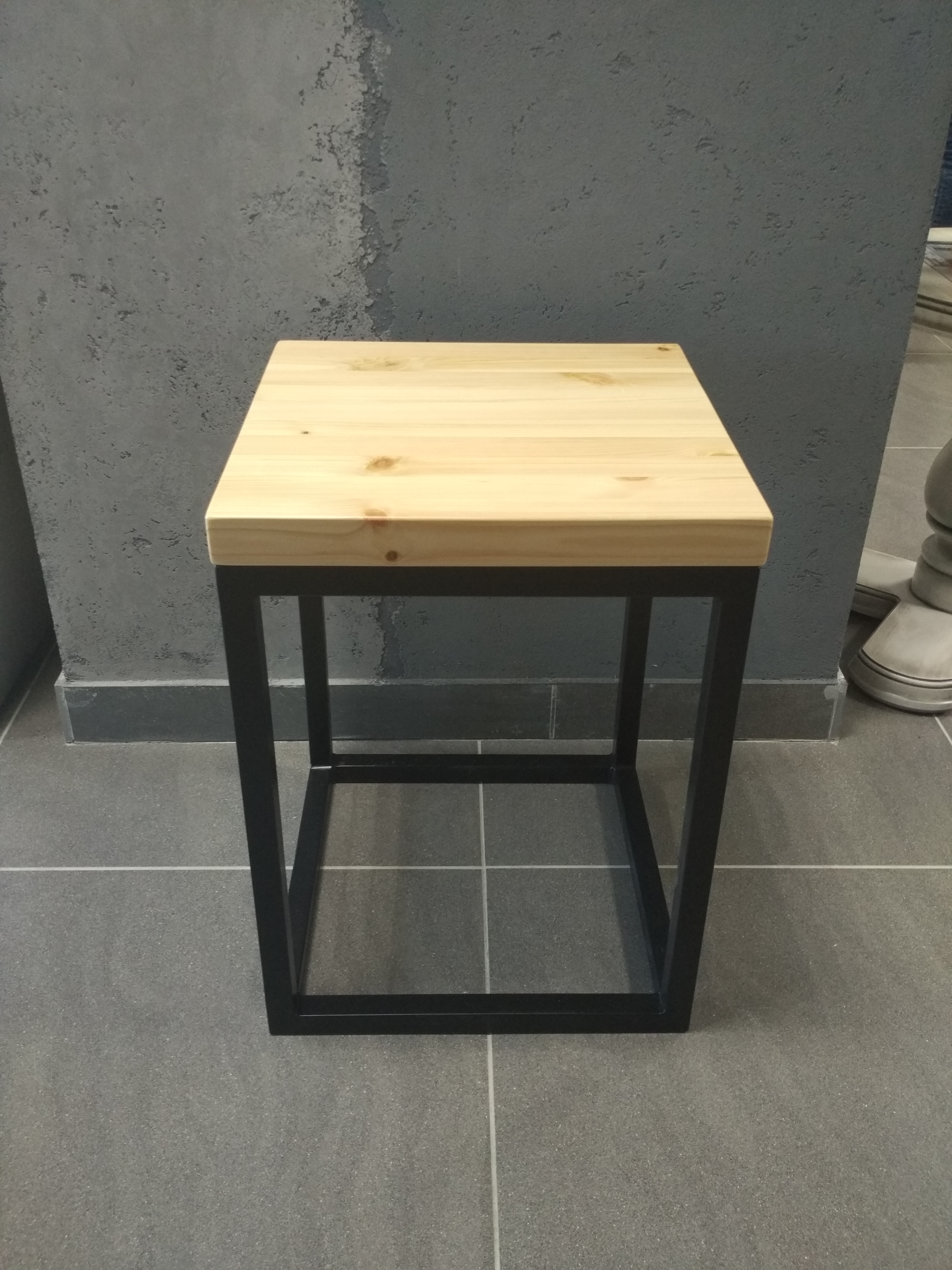 Высокий деревянный табурет, высота 78 см. Материал: цельноламельный массив дуба, металл.