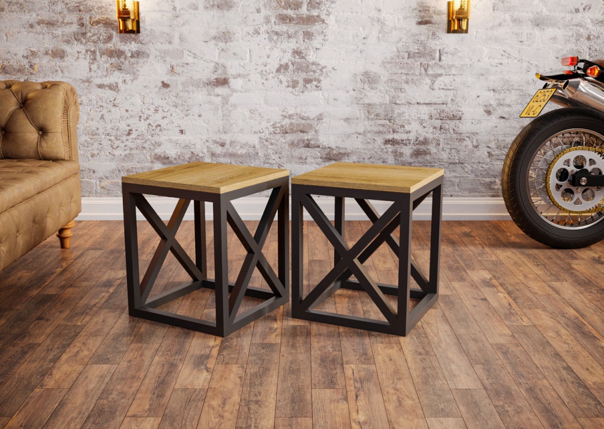 Эффектный, брутальный, табурет с декоративными крестами в стиле лофт. Отлично подойдет для офиса, в кафе и бары, в салоны услуг, а также дома на кухню. Визуально, соответствует всем признакам лофта. Изготовлен из профильной трубы 20х20, сидение выполнено из ЛДСП. Главное преимущество табуретки “Купер” – это долговечность! Не сомневайтесь, табурет прослужит вам долгие годы. Табурет может служить вам в качестве прикроватной тумбы или журнального столика.
