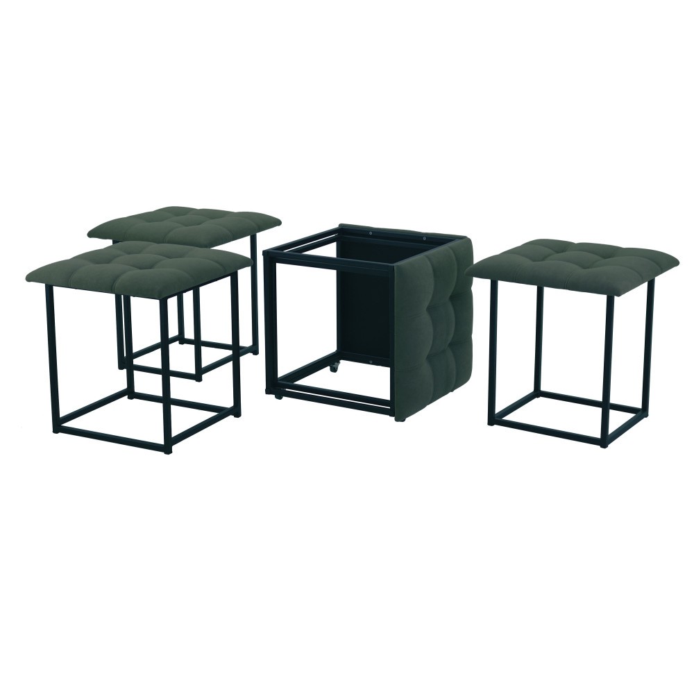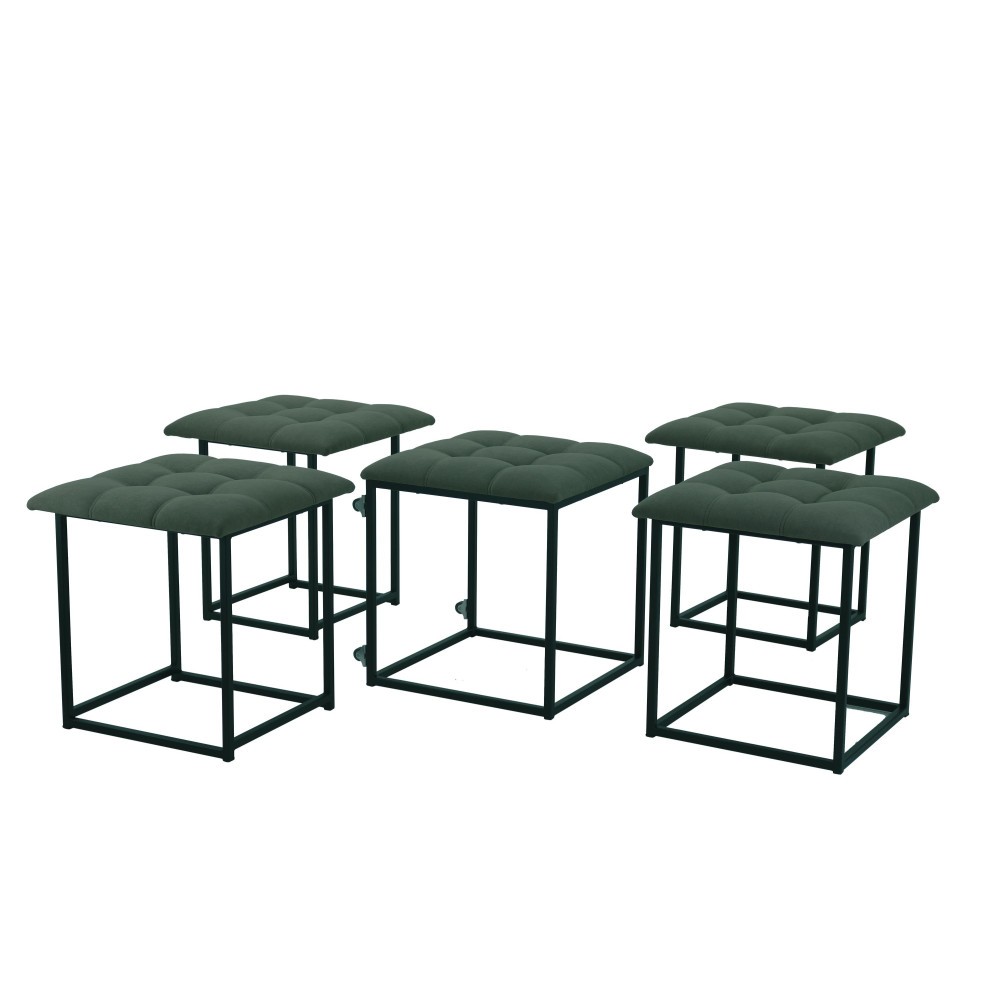 Компактный и удобный табурет-трансформер 5 в 1 серии “HOME”: из одного мягкого пуфа в форме куба он трансформируется в 5 отдельных полноценных мест для сидения, а после так же легко собирается назад в цельное изделие. Каркас каждого табурета изготовлен из металлической профильной трубы сечением 15х15х1,5 мм с полимерным покрытием и оснащен пластиковыми подпятниками.