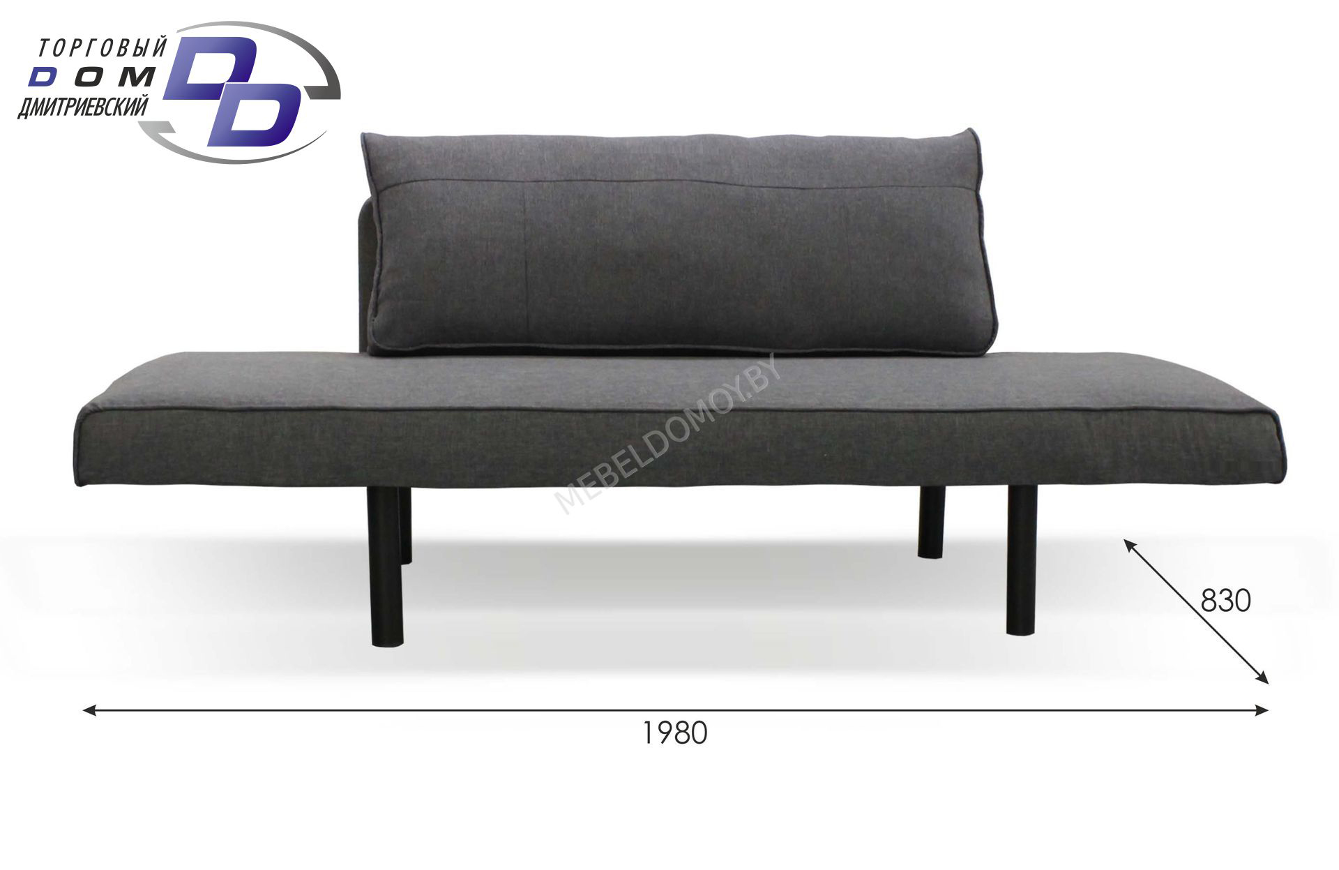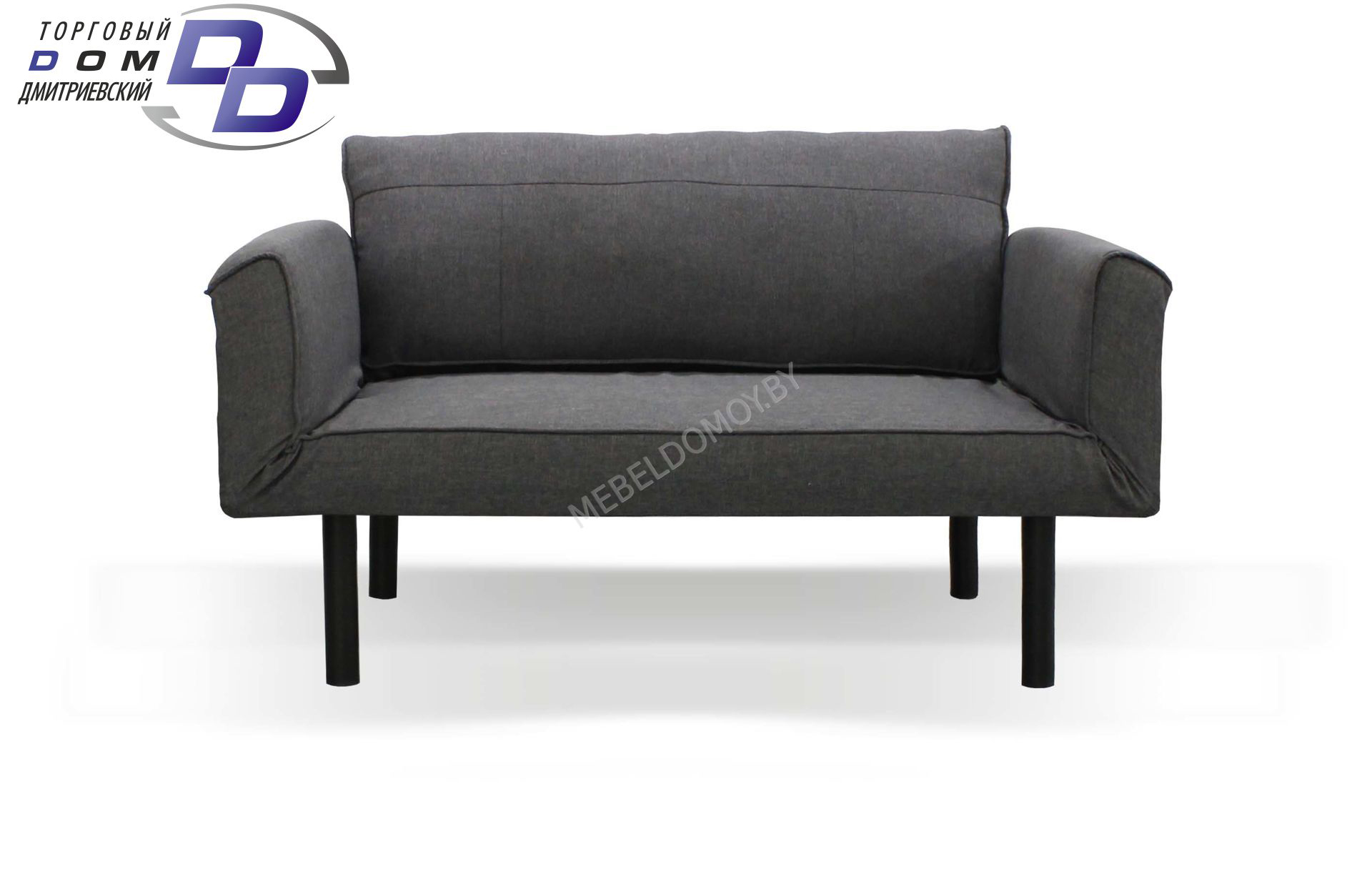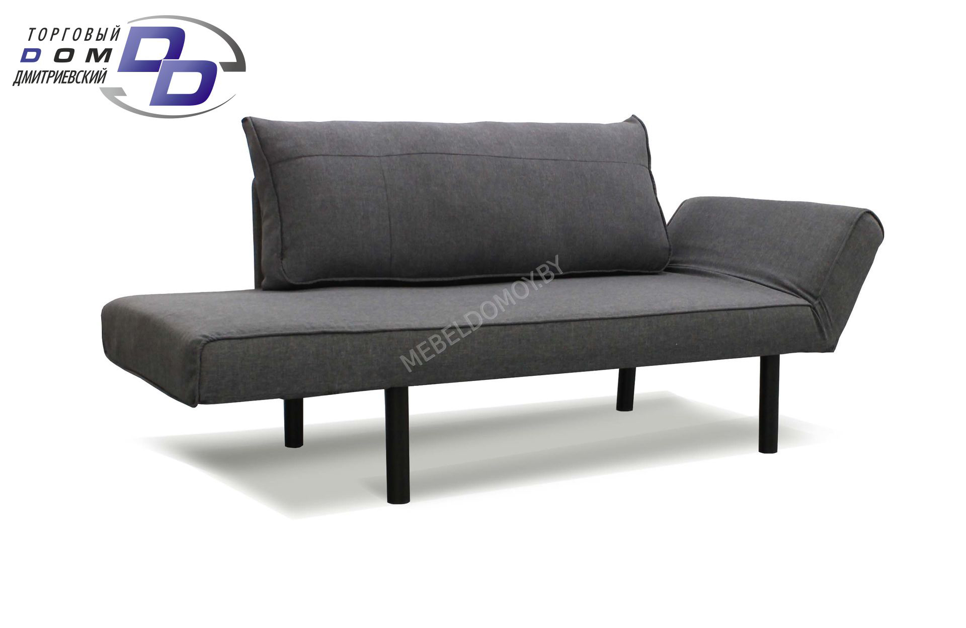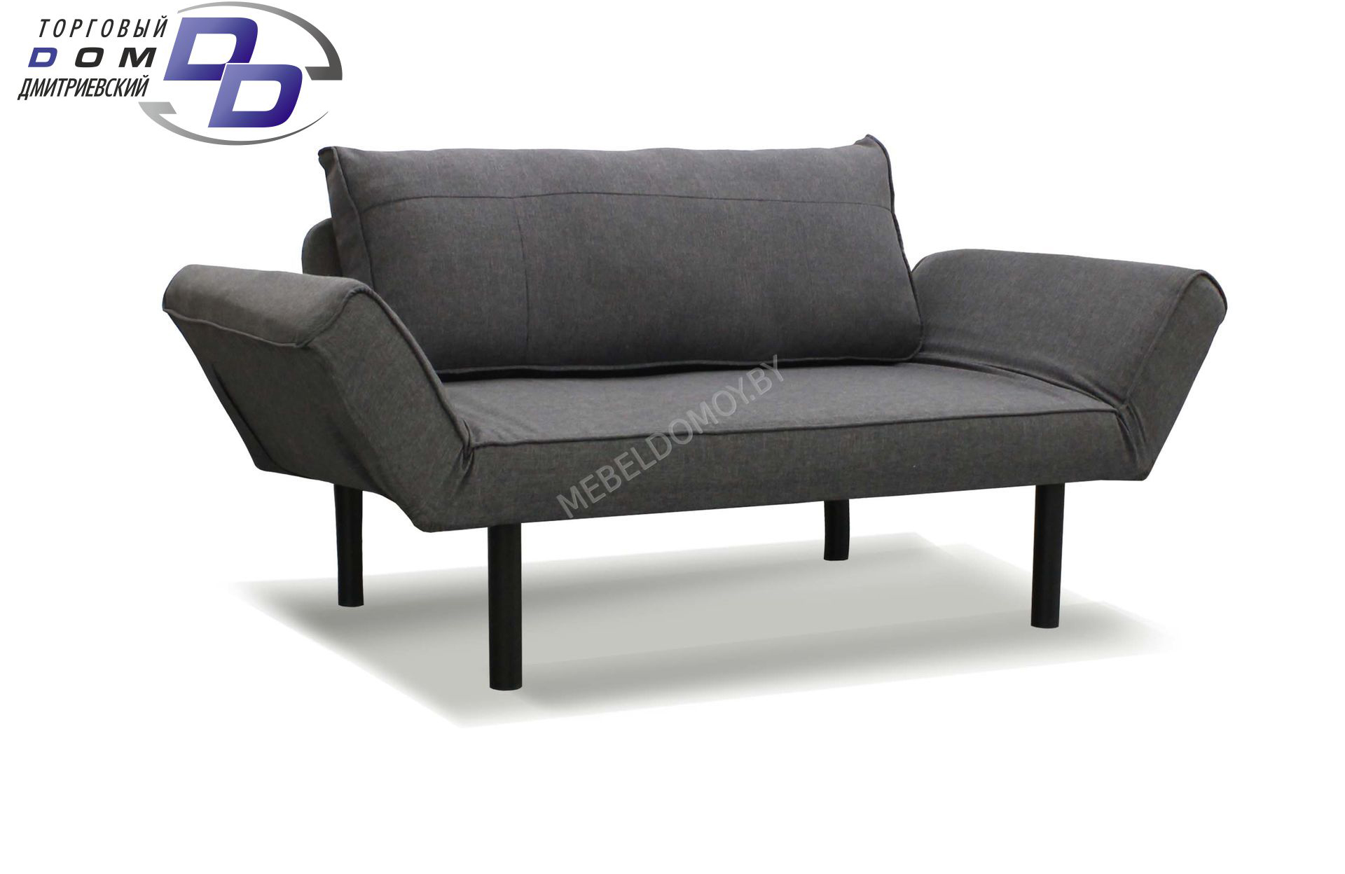 Диван-кровать «Литали» выполнен в современном стиле и установлен на высокие темные ножки. Подлокотники имеют возможность раскладываться, за счет чего модель прекращается в небольшую кровать. В качестве обивки выбрана мебельная ткань серого цвета.