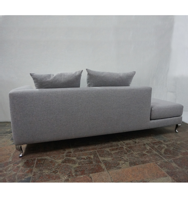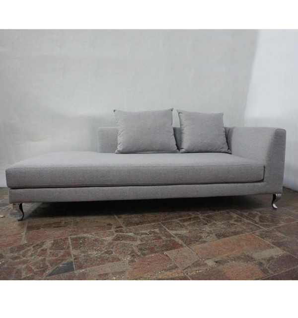 Крафтовый диван-тахта с просторным сиденьем на волнистых хромированных ножках. Обивка из рогожки нейтральной серой расцветки делает диван универсальным для большинства современных и классических интерьеров, будь то гостиная, летняя терраса, спальня или лофт.