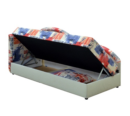 Яркий прямой диван «Люкс»1 выполнен в стиле британского флага. В диване изготовлено отделение для хранения постельного белья, занимающее все свободное пространство под спальным местом. Общий размер дивана не большой, поэтому его можно легко разместить в ограниченном пространстве.