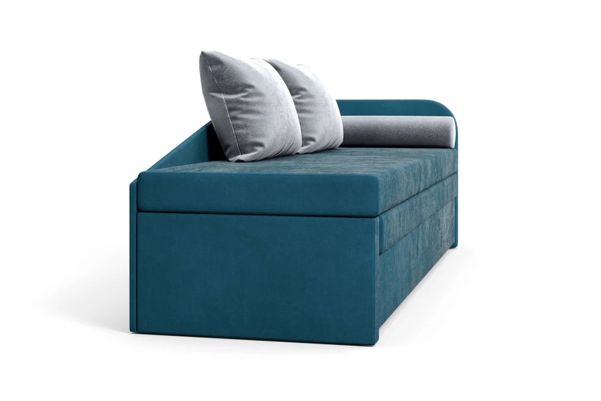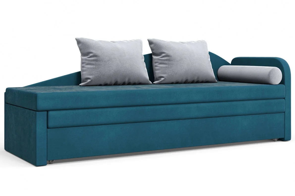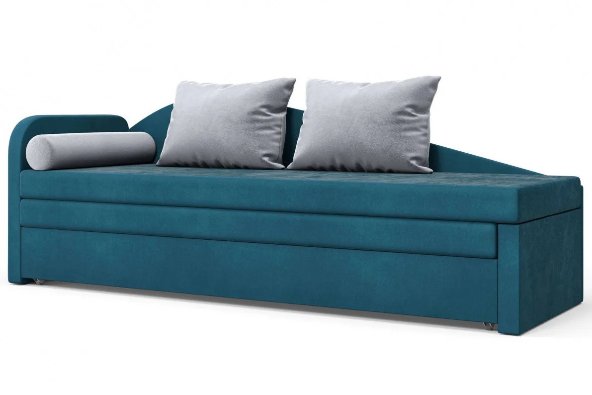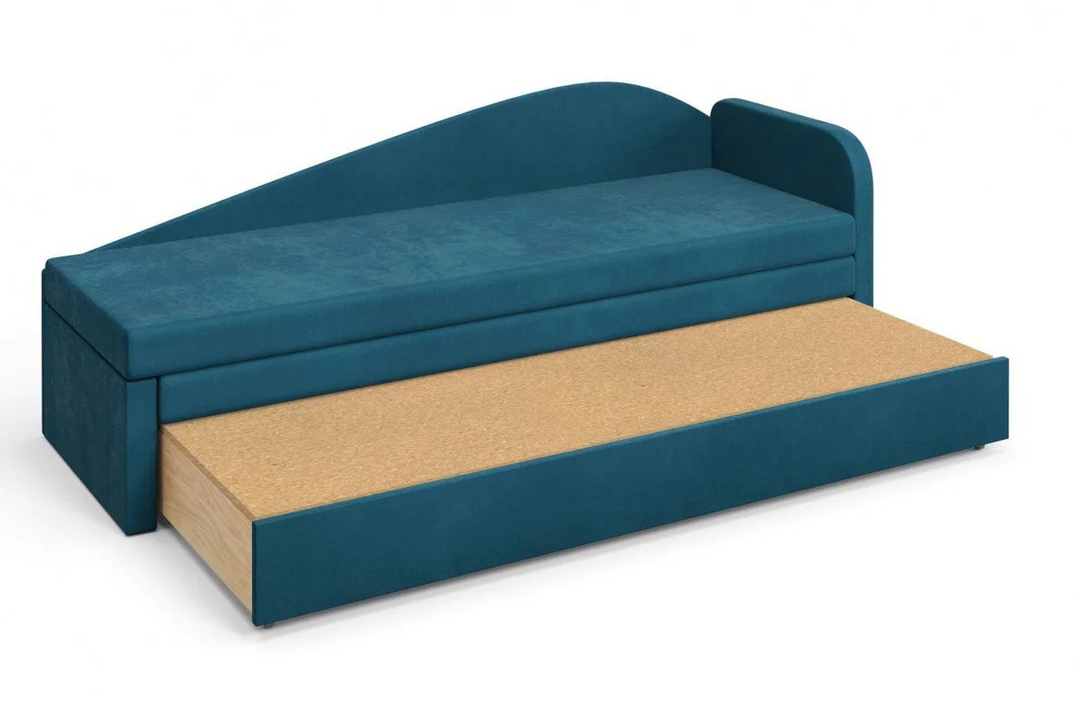 Обивка выполнена из велюра — прочного и красивого материала, который долго сохраняет свой привлекательный внешний вид. Синий цвет дивана станет стильным дополнением вашего интерьера и добавит в него яркие акценты.