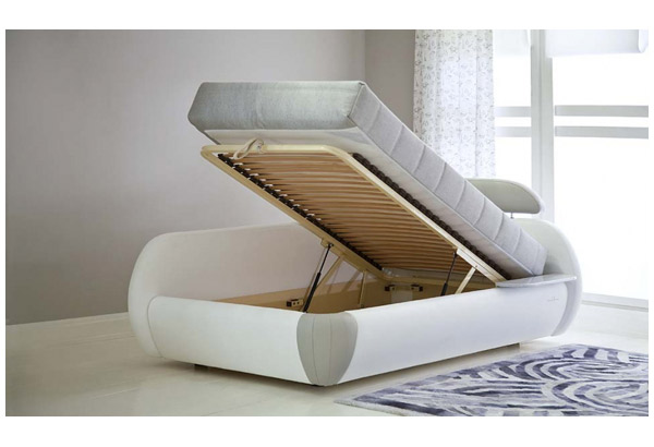 В комплект входят три декоративные подушки. Имеется ящик для спальных принадлежностей.
