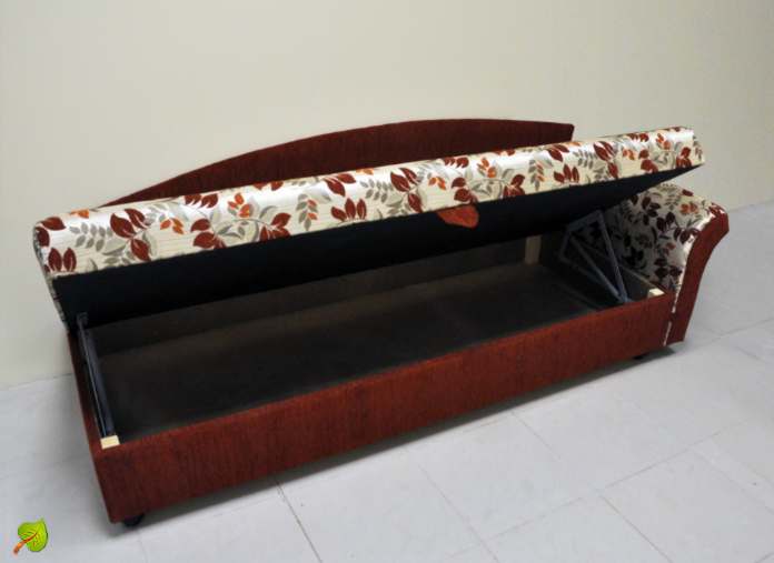 Изделие дополнено удобной нишей для постельных принадлежностей. В случае использования тахты лишь в качестве дивана, нишу можно применять в качестве шкафа для хранения вещей. Вы можете выбрать сочетание обивки из других материалов и в другой цветовой гамме.
