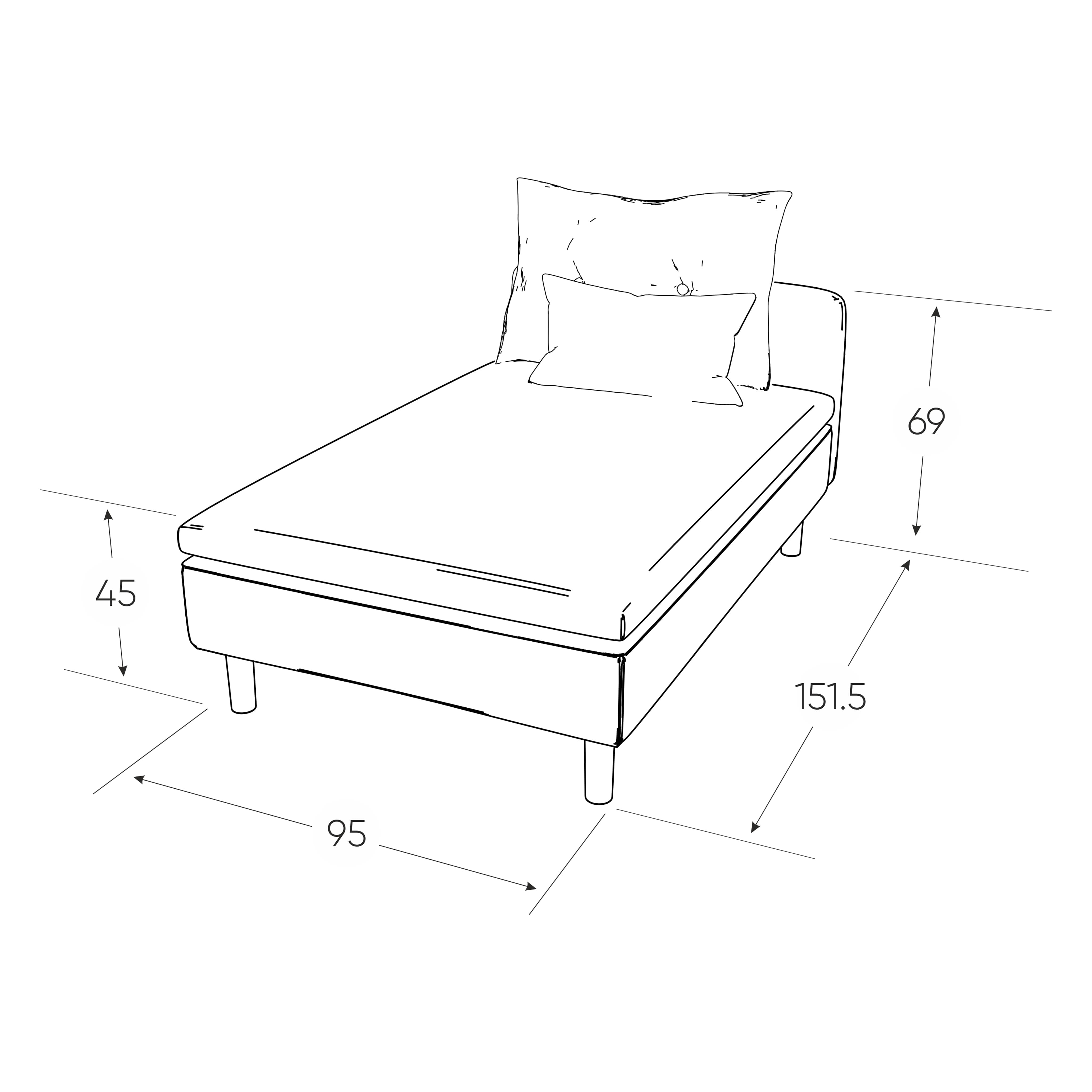 Наполнение: Независимый пружинный блок. Спальное место: 900х1900 мм.
