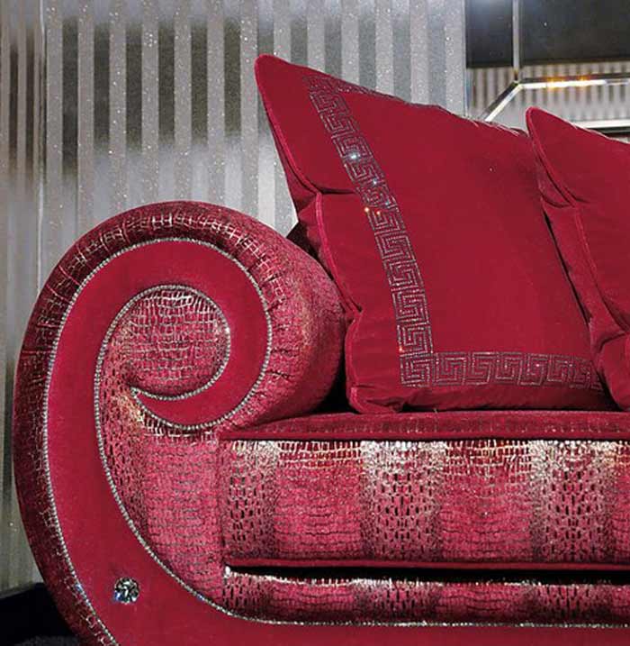 По желанию клиента можно инкрустировать стразами. Сиденье софы может быть как съемное, так и не съемное, постоянного сечения, как беспружинное, так и с блоком независимых пружин, облицовано мебельной тканью или кожей. По желанию клиента обивка может быть как из тканей различных типов, так и из натуральной кожи. Наполнение спального места также может изменяться, от ППУ до независимых ортопедических систем.