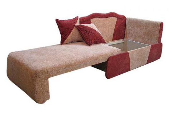Просторная тахта в скромной расцветке со стильным рисунком.