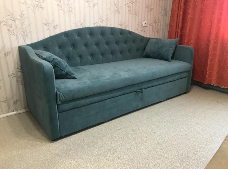 Синяя тахта «Виктория» с декоративной подушкой