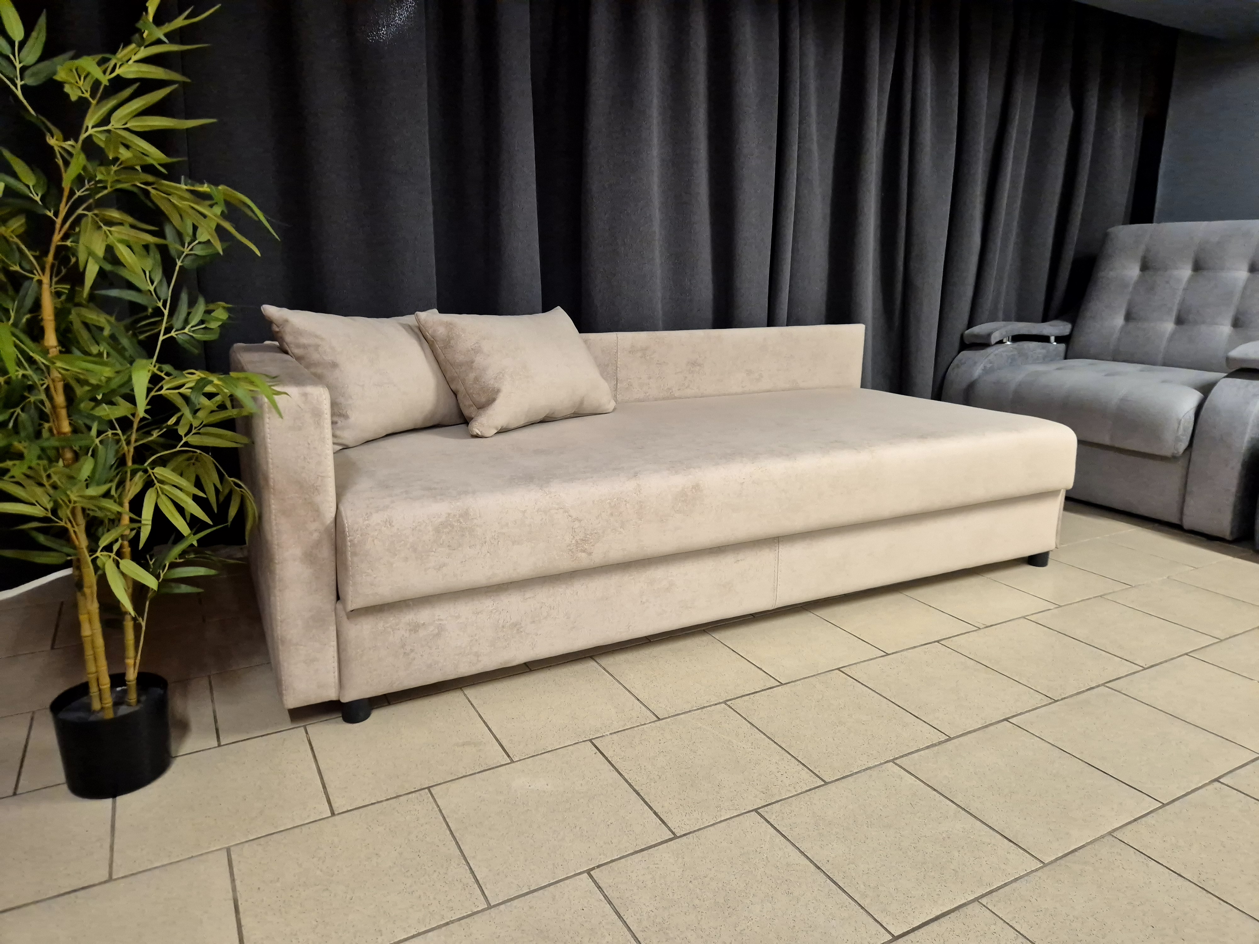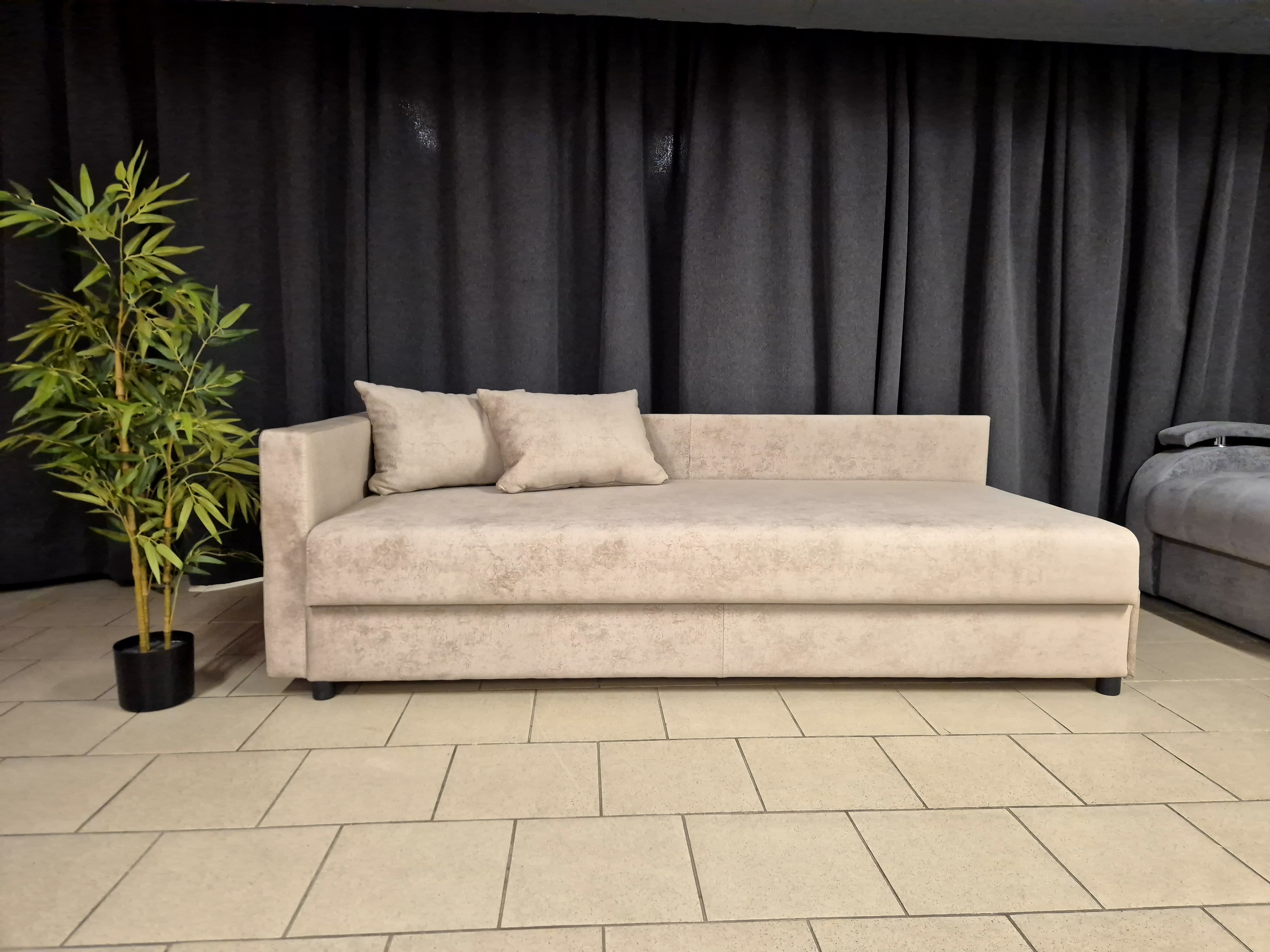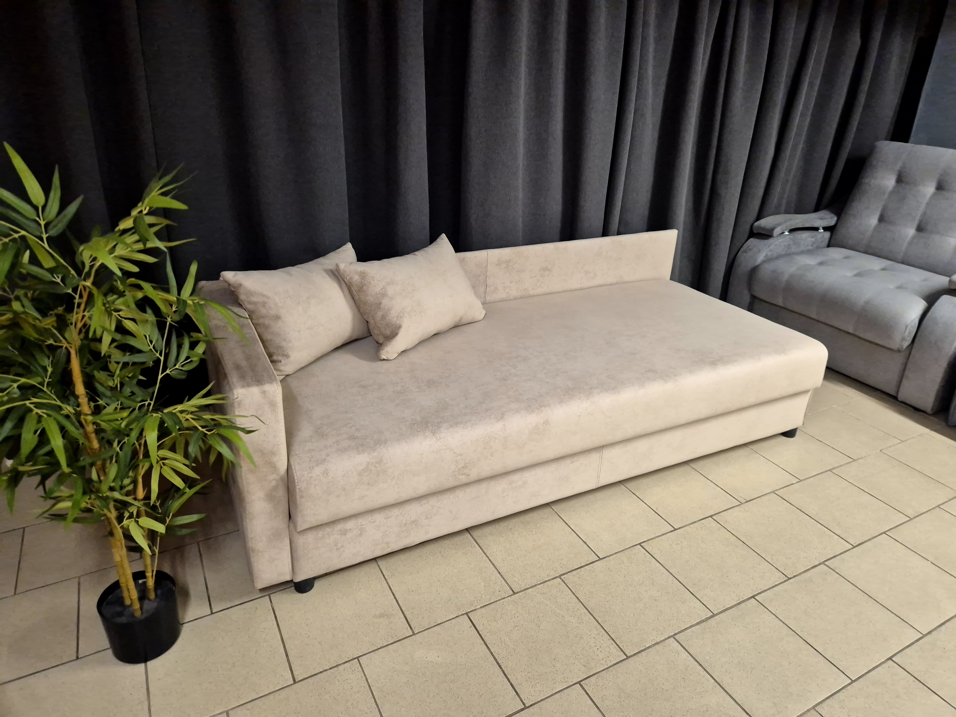 Бежевая тахта «Виктория» с рисунком на обивке