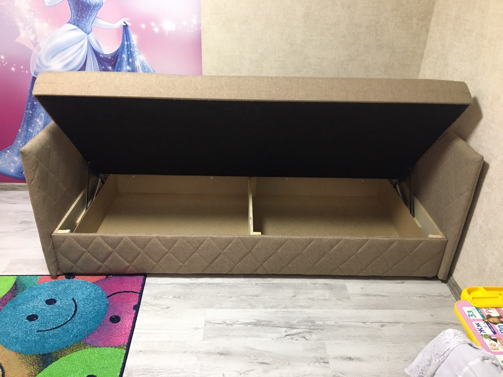 код 111275Тонкая спинка и подлокотники. Подъемный механизм. Два ящика для белья.