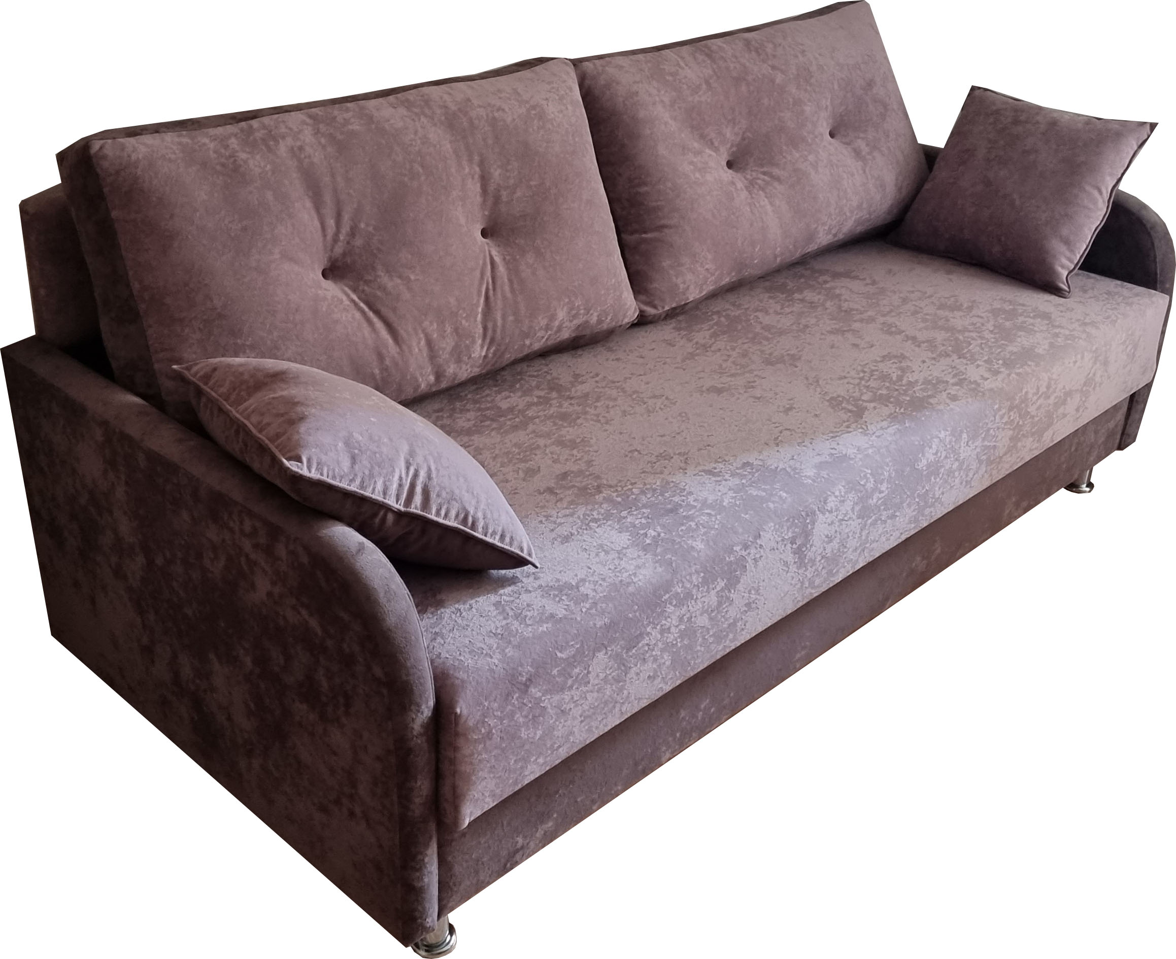 В комплект входят три декоративные подушки. Имеется ящик для спальных принадлежностей.