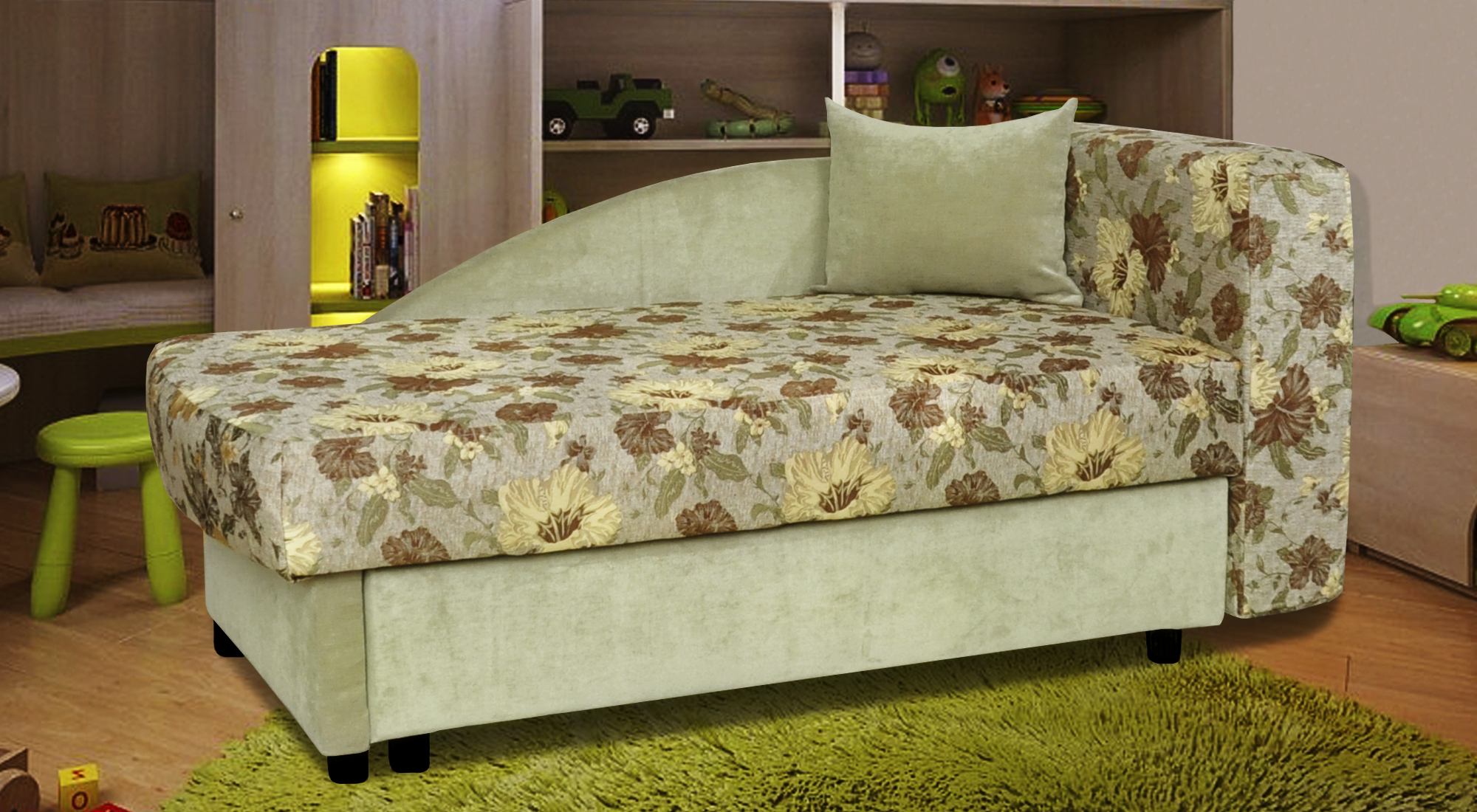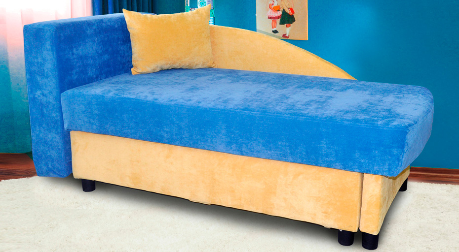 Оригинальное оформление тахты «Настенька» украсит детскую комнату и придаст ей новые краски. Откидная спинка легким движением трансформируется в дополнительную подушку, формирующую спальное место. Тахта может быть левосторонней и правосторонней, что дает ей преимущество надо односторонними моделями. Обшивку можно выбрать под интерьер конкретной комнаты, чтобы дополнить композицию интерьера.