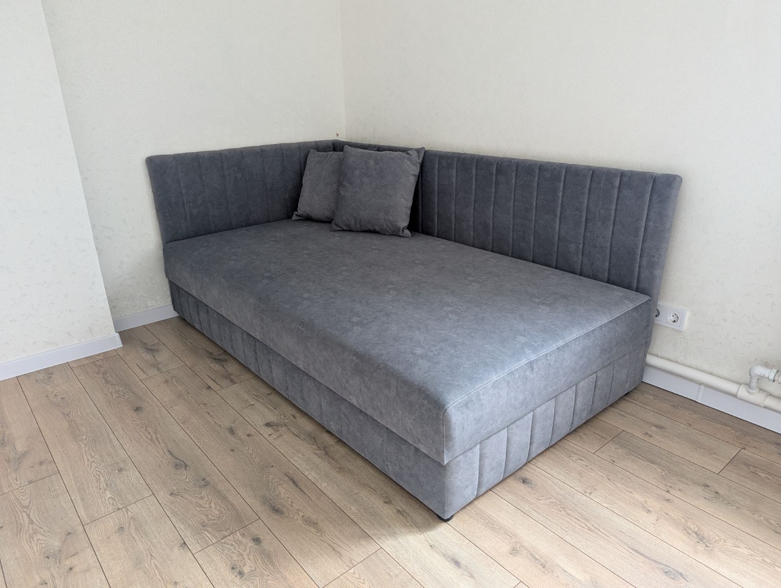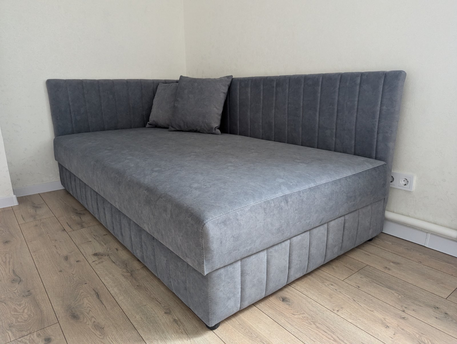 - Материал: микровелюр — мягкий и приятный на ощупь материал, который легко чистится и сохраняет свой первоначальный вид.