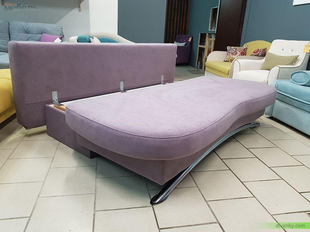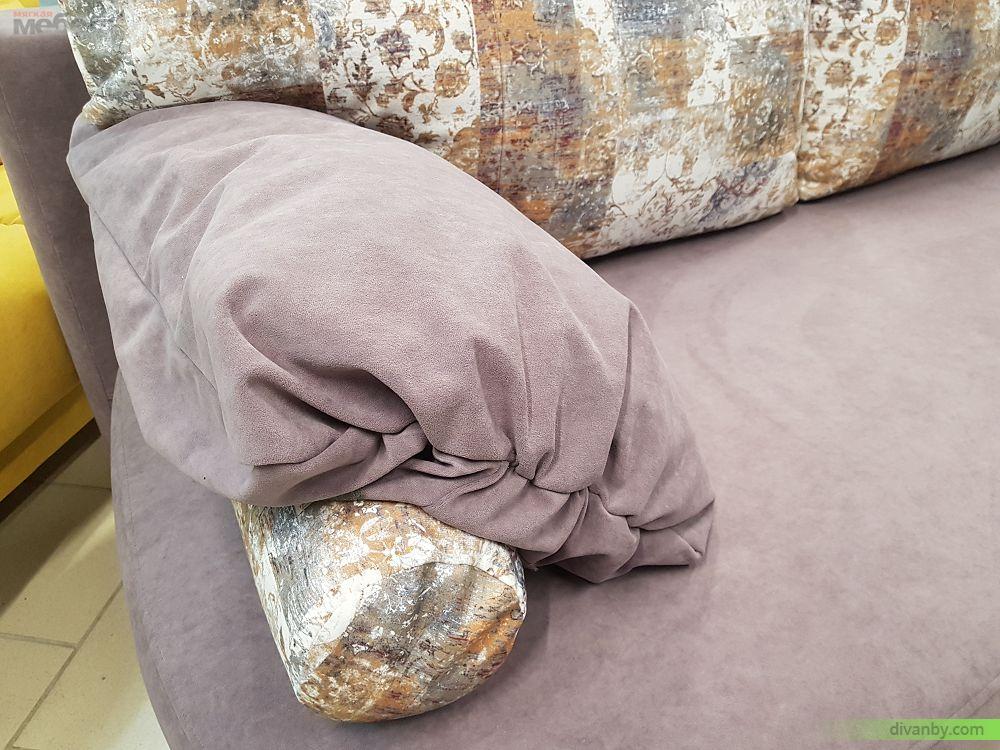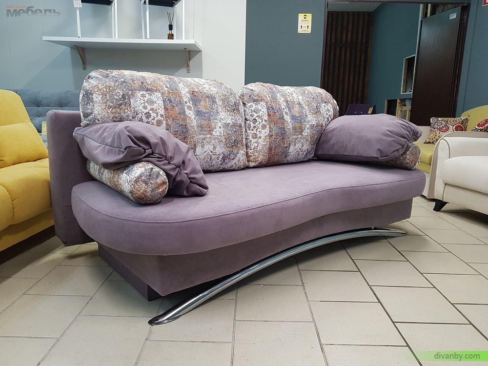 Фигурная спинка, тонки подлокотники, отделка пиковкой. Диван подходит для ежедневого сна.
