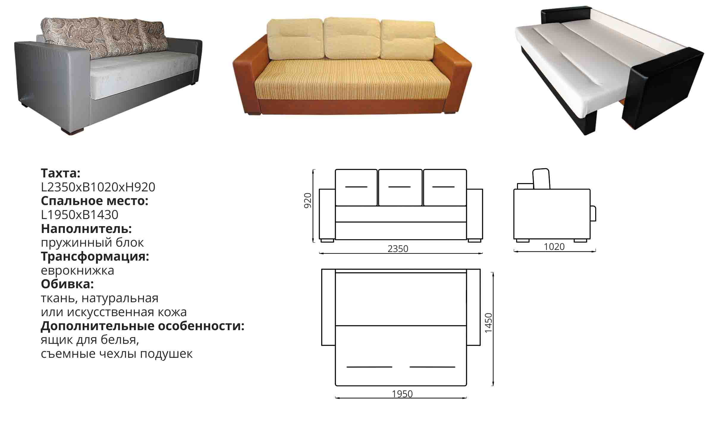 Габариты (ДхГхВ): 155х88х86 см. Пружинный блок. Механизм: еврокнига.