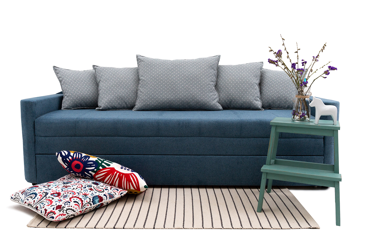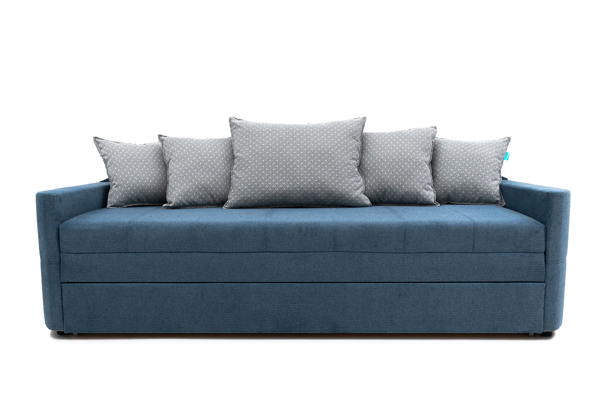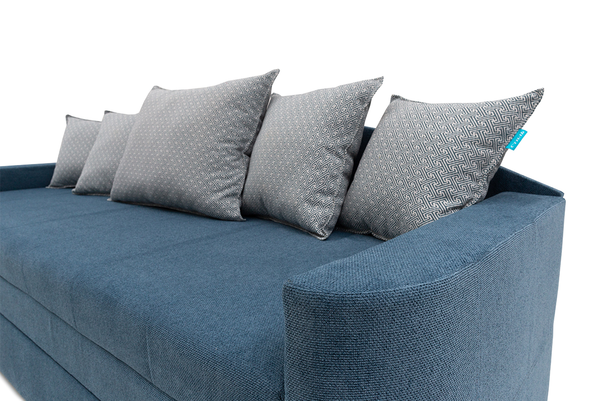 Тахта Юна — современная, удобная, простая модель. В разложенном виде представляет удобную 2-х спальную кровать. Сидение и спинка на основе пенополиуретана. Имеется емкость для постельных принадлежностей. В комплект входят 5 подушек спинки. Может изготавливаться в разных цветовых решениях. Механизм трансформации – «выкатной».