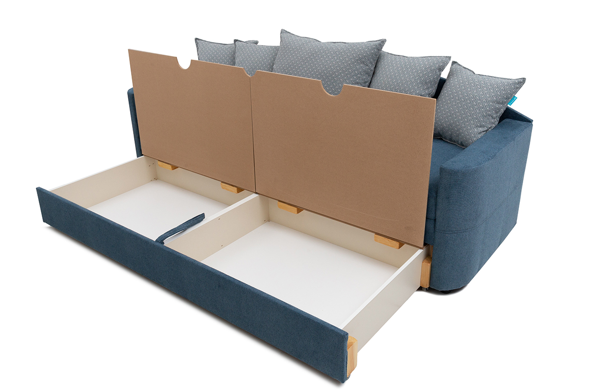 Способ раскладывания: потянуть за потайной ремешок и выдвинуть до полного разложения, откинуть подушки или матрац назад.