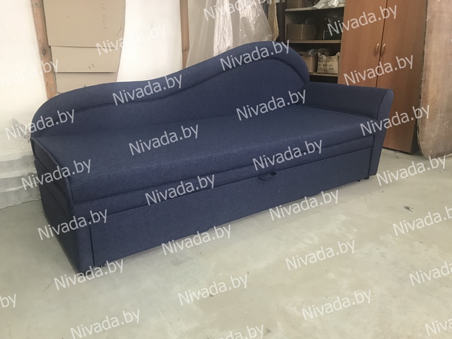 Фигурная спинка, тонки подлокотники, отделка пиковкой. Диван подходит для ежедневого сна.