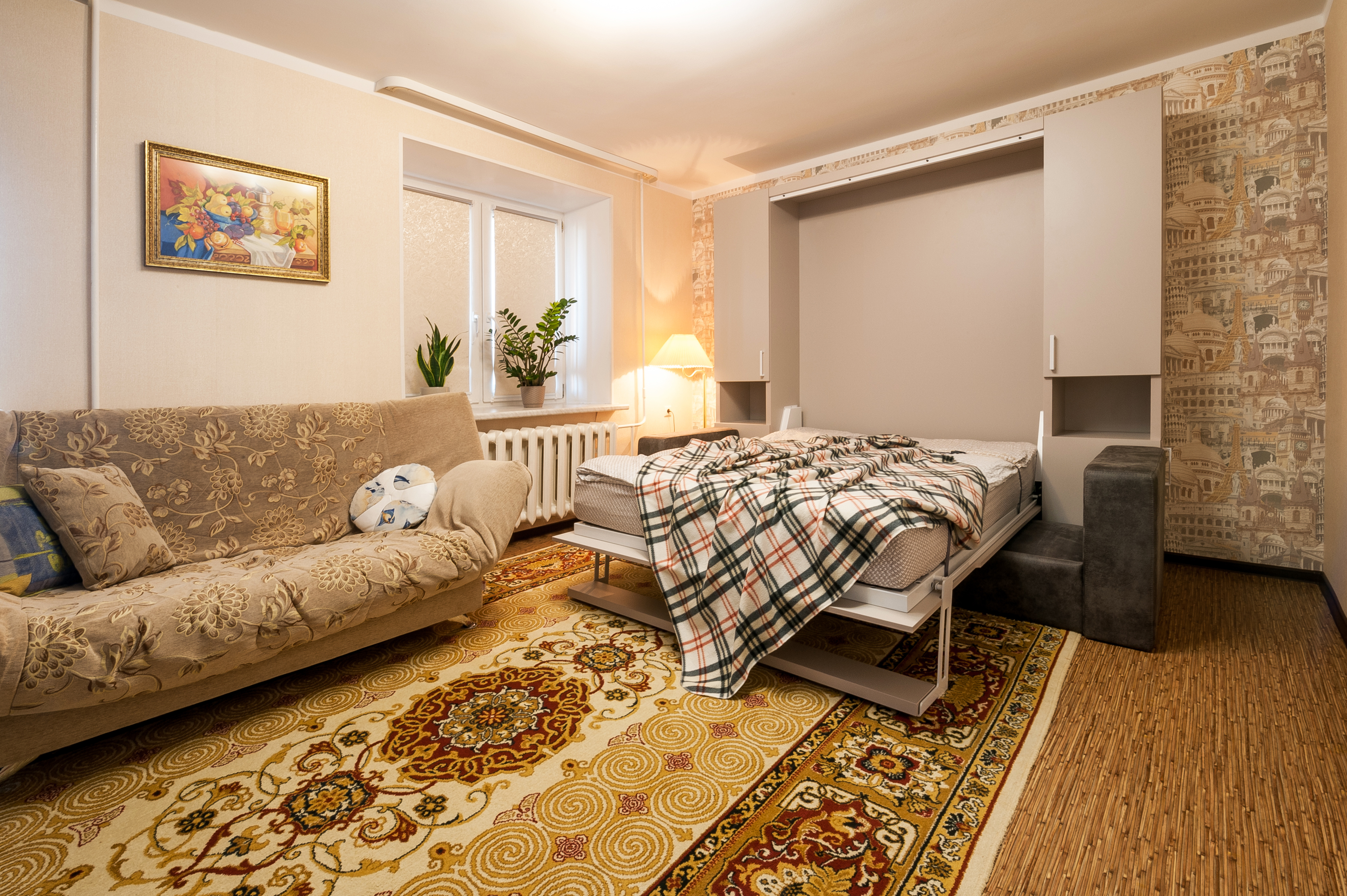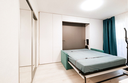 Подъемная откидная кровать-трансформер, встроенная в шкаф как для взрослых так и для детей.