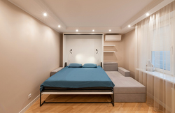 Компактная модель совмещает в себе кровать-трансформер и зоны для хранения.