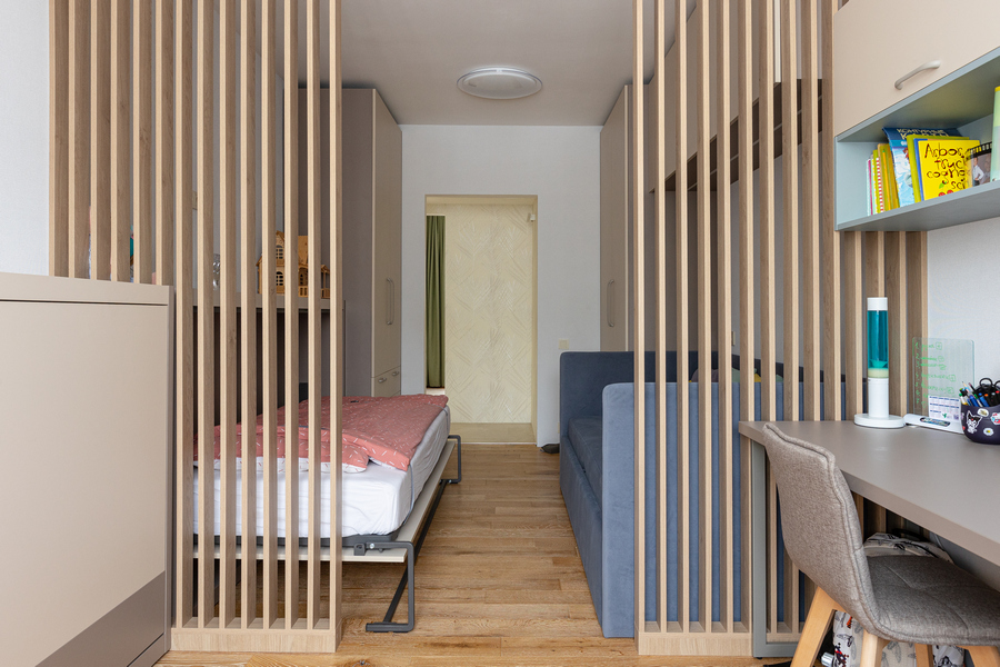 Две кровати-трансформер размер спального места 900х2000 мм горизонтального сложения c механизмом Пинетти. Материал изготовления ЛДСП Egger. Проект «Лосс» выполнен по индивидуальному заказу. Цена на сайте указана за кровати-трансформер (матрас в стоимость не входит).