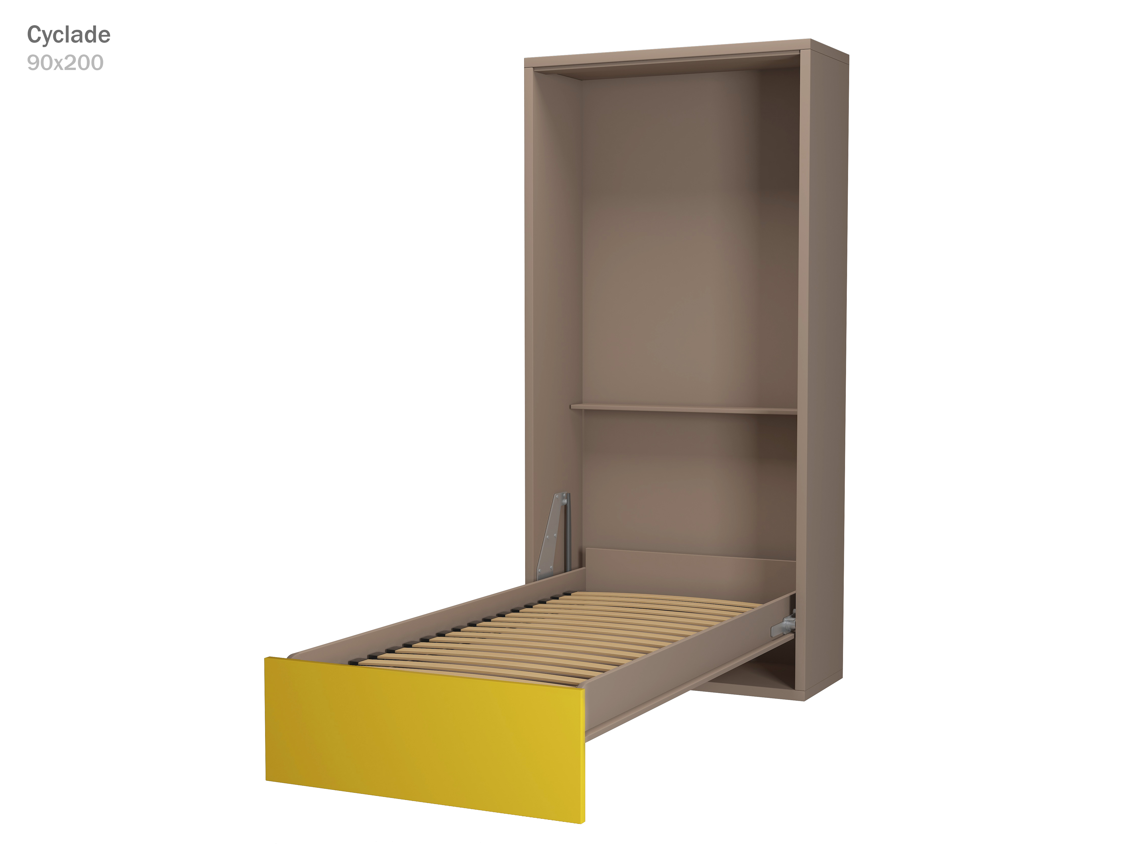 Изысканность и надёжность — главные характеристики кровати «Cyclade». Фасады жёлтого цвета придают модели яркость и оригинальность. Вы не только получите удобное спальное место, но и сможете добавить в интерьер нотку цвета.