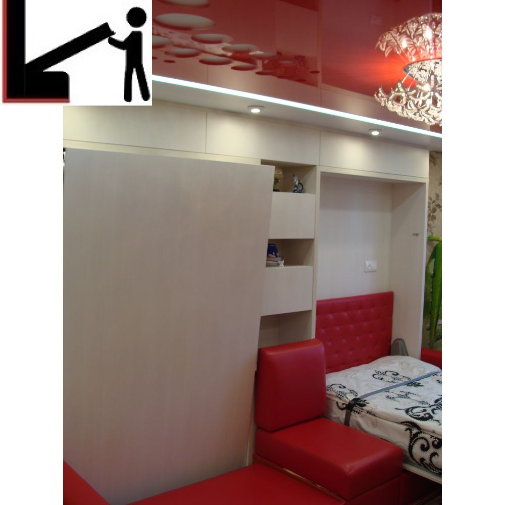 Подъемная откидная кровать-трансформер, встроенная в шкаф как для взрослых так и для детей.