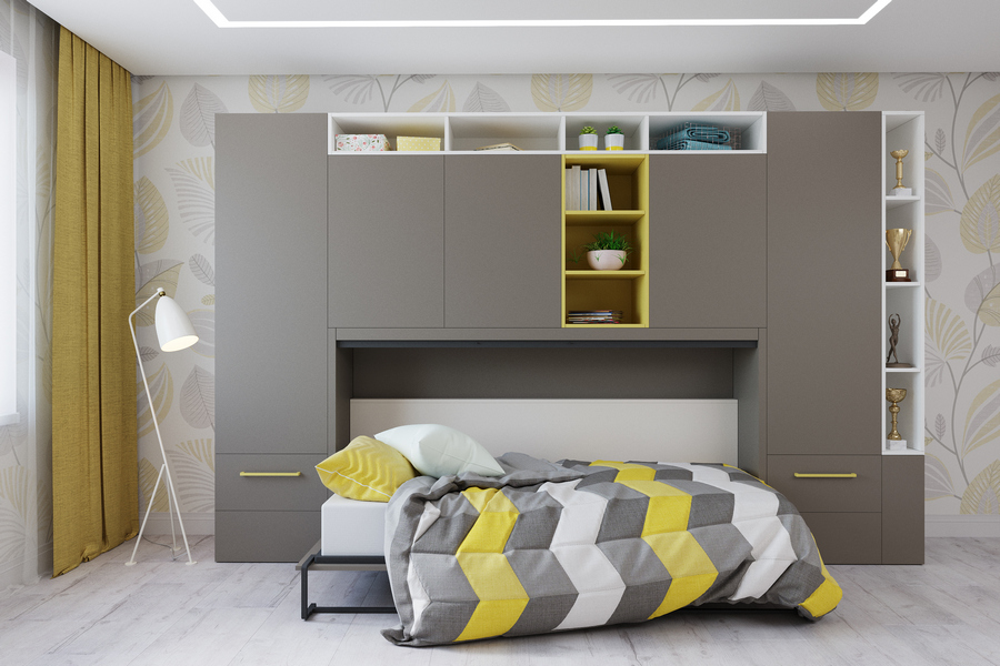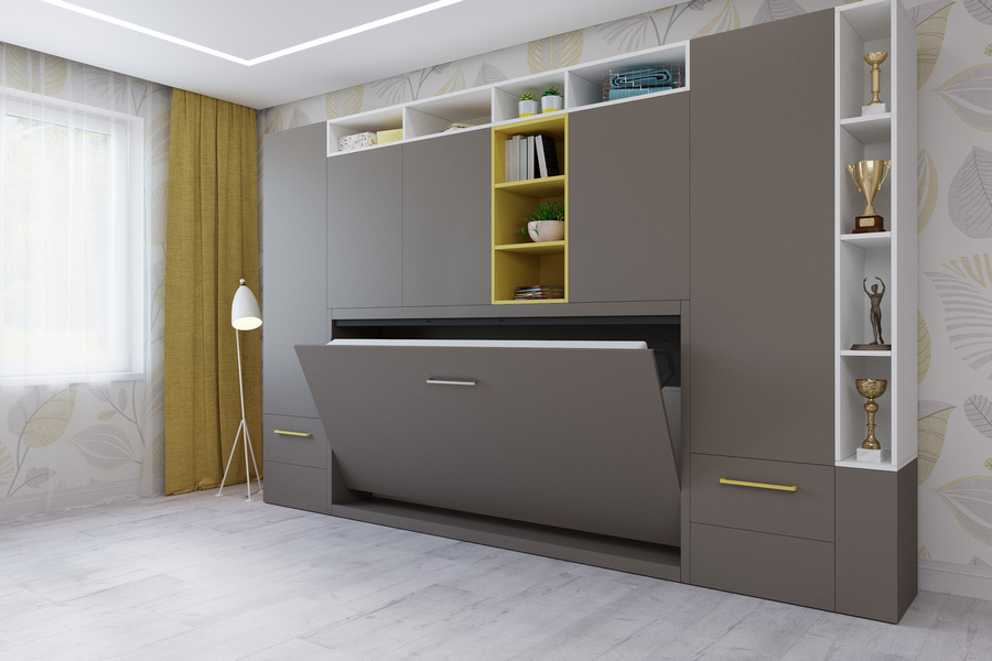 Подъемная откидная кровать-трансформер, встроенная в шкаф как для взрослых так и для детей.
