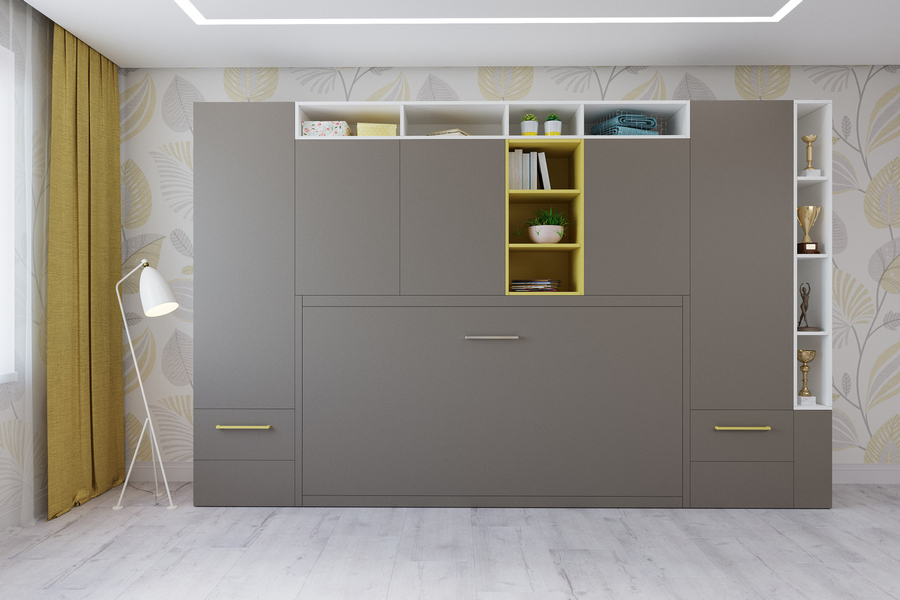 Механизм трансформации кровати позволяет оптимизировать пространство. Зоны хранения рассчитываются дизайнером на встрече в салоне с учётом ваших потребностей, так как эти параметры индивидуальны.