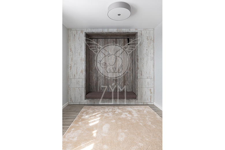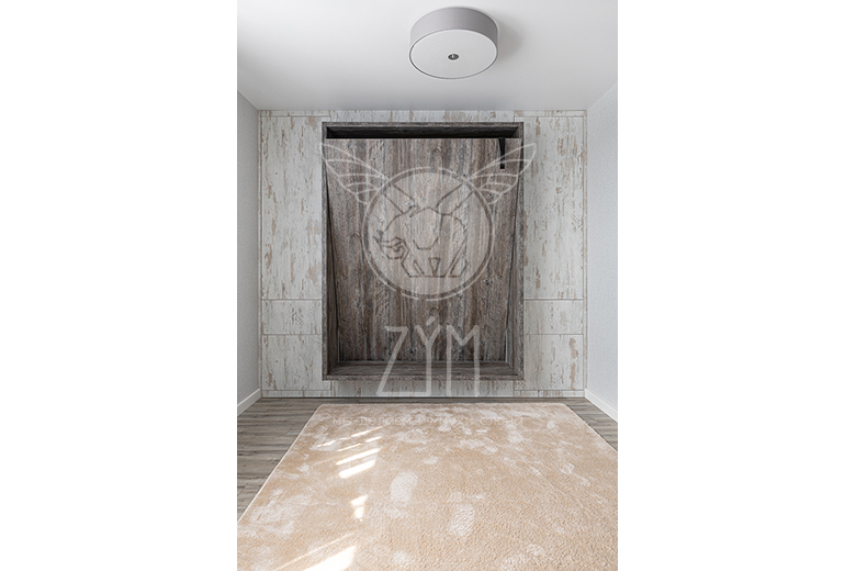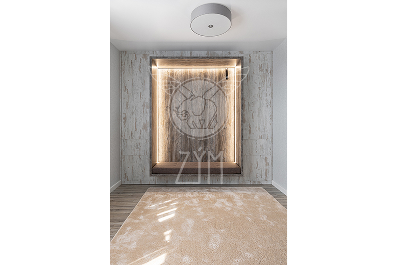 Кровать-трансформер вертикального сложения с закрытыми зонами хранения и подсветкой. Материал исполнения - Cleaf + ЛДСП Эггер