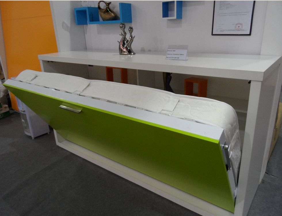 Шкаф-кровать с яркой полкой зеленого цвета