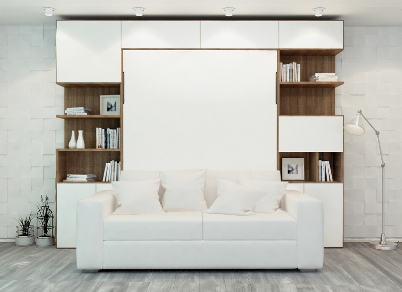 Кровать-трансформер с полками и выдвижными ящиками прекрасно впишется в интерьер вашей гостиной или спальни. Светлая древесина подарит помещению покой и уют, иными словами, то, что так необходимо для комфортного отдыха и сна.