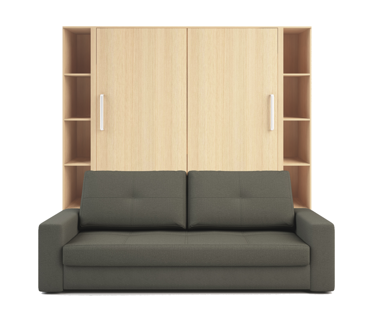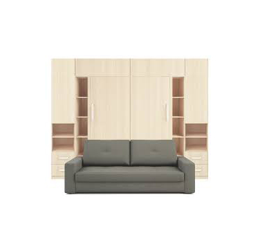 Мебель-трансформер из ЛДСП Эггер горизонтального сложения для детской с закрытыми и открытыми зонами хранения.