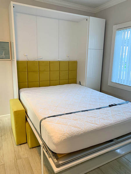 Надёжный и лёгкий механизм трансформации. Изготовление по индивидуальным размерам. Широкий выбор материалов.