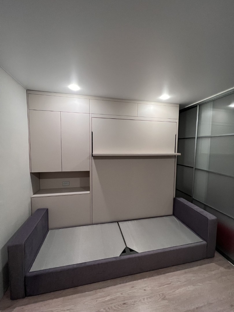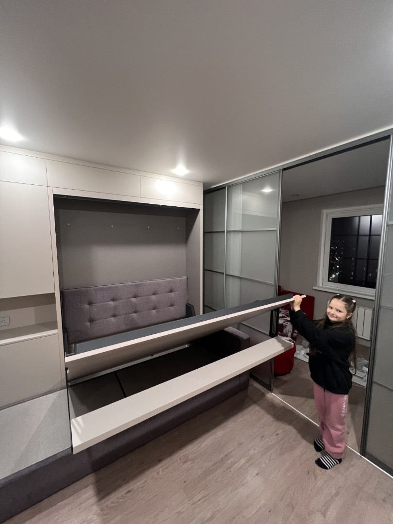 Надёжный и лёгкий механизм трансформации. Изготовление по индивидуальным размерам. Широкий выбор материалов.
