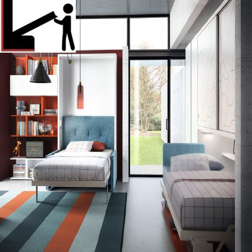 Комплект мебели включает шкаф и кровать-трансформер с диваном и закрытыми зонами для хранения из ДСП Egger.
