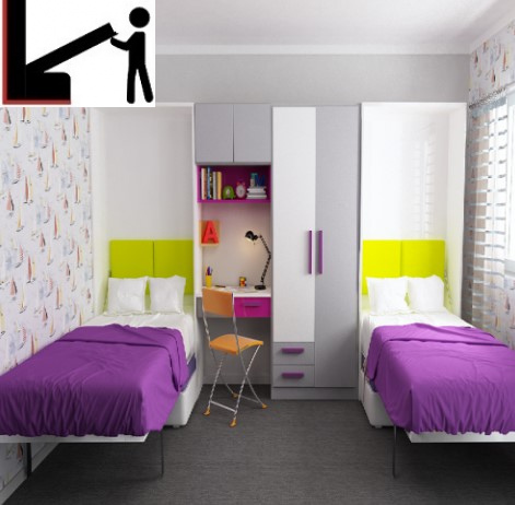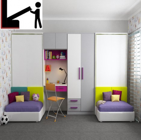 Подъемная откидная кровать-трансформер, встроенная в шкаф как для взрослых так и для детей.