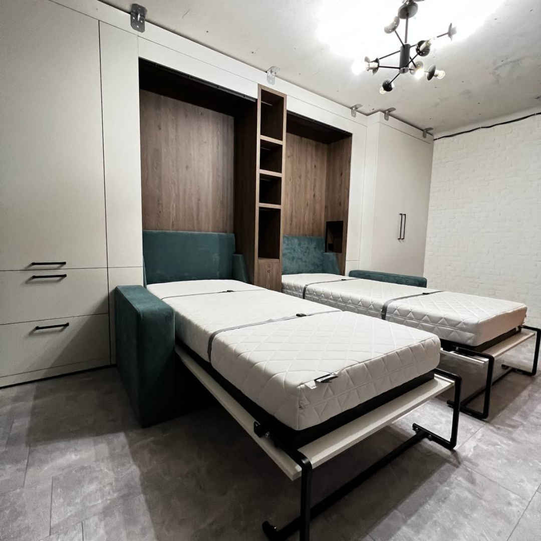 Шкаф-кровать с надежным механизмом трансформации. Встроенная подсветка. Изготовление по индивидуальным размерам. Широкий выбор материалов.